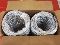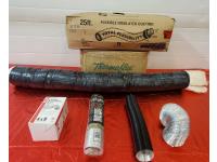4 inch x 4 ft 30 ga with elbows, 4 inch x 30 inch 30 ga, 4 inch x 20 inch 30 ga, 5 of 5 inch w 24 inch 30 ga, 2 of 5 inch × 22 inch 30 ga, 5 inch × 36 inch 39 ga, 6 inch ×5 inch Reducer & 5 inch x 4 ft 6 inch 30 ga & Chimney Cap Assembly, 4 inch Galvanized Air Intake hood, 2 Thermaflex 10 inch x 25 ft Flexible HVAC Ducts, Type SL-D, Part Number 0541-1000-0001, 1- 25 ft 4 inch Insulated Flexible Ducting, Small piece of 1- 4 ft 4 inch of Insulated Flexible Ducting, 4 inch ×8 ft Flexible Transition Aluminum Duct, 4 inch ×66 inch Flexible Transition Aluminum Duct 3 inch Flexpipe Aluminum Duct, 3 inch Black Aluminum Duct