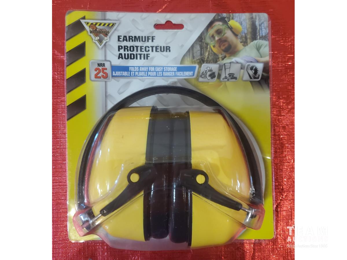 Collapsible Protective Hearing Muff, LED Headlight, High, Low & Flash, 5 Pairs of New Safety Glasses, 2 New Canada Day Hats, Impact, Battery, Case, Stand, Tumbler, Box, Maximum 20V Max Cordless Impact Wrench Lightweight ½”, 18 Volt Ni-Cid Battery, Ridgid Soft Carry Case, Dewalt Laser Level Stand, Tackle Box