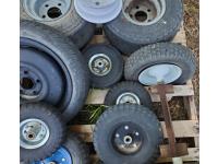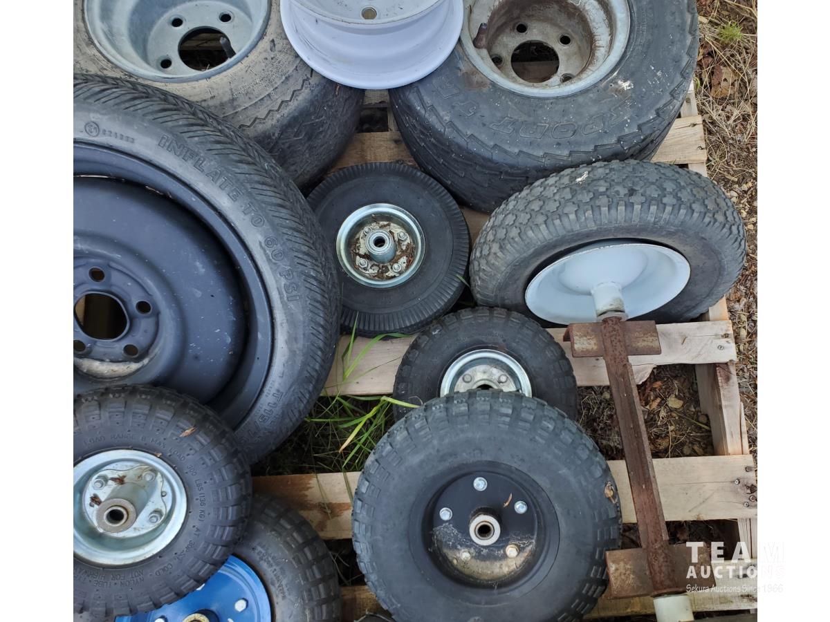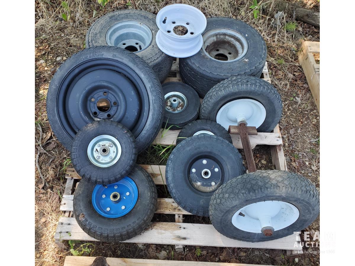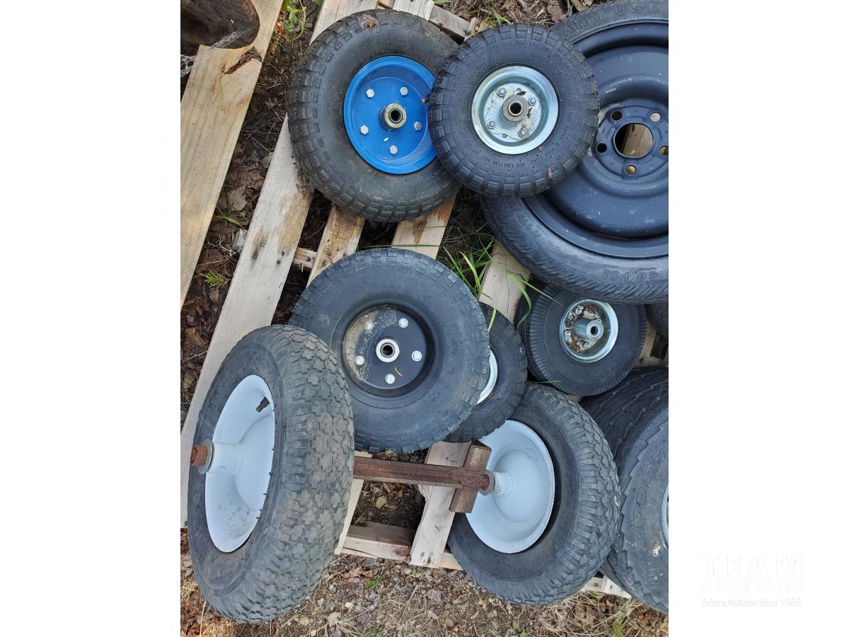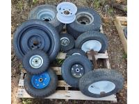 Assortment of Wheelbarrow, Trailer, Dolly, Vehicle Wheels and Rims, Galvanized & Steel