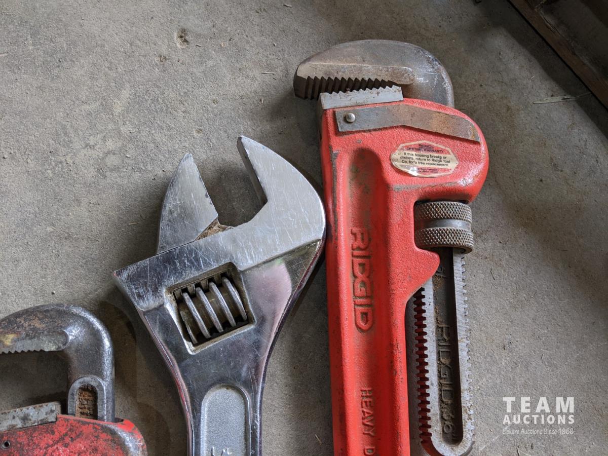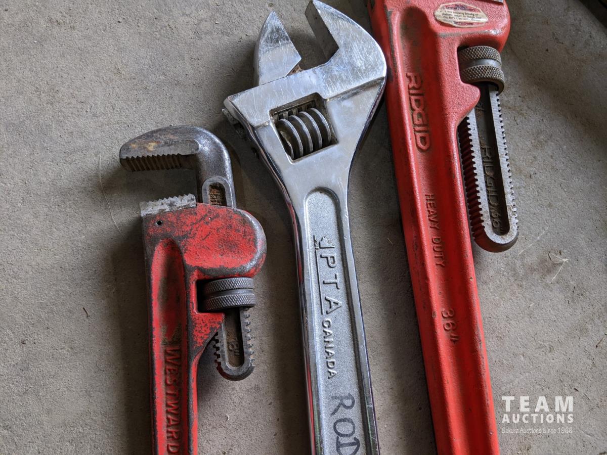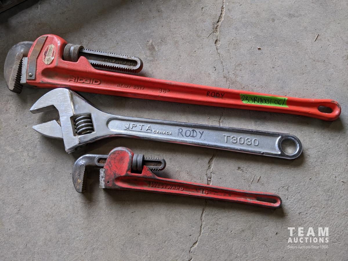 1235 Ridgid 36 Inch Pipe Wrench, PTA 24 Inch Crescent Wrench and Westward 18 Inch Pipe Wrench