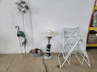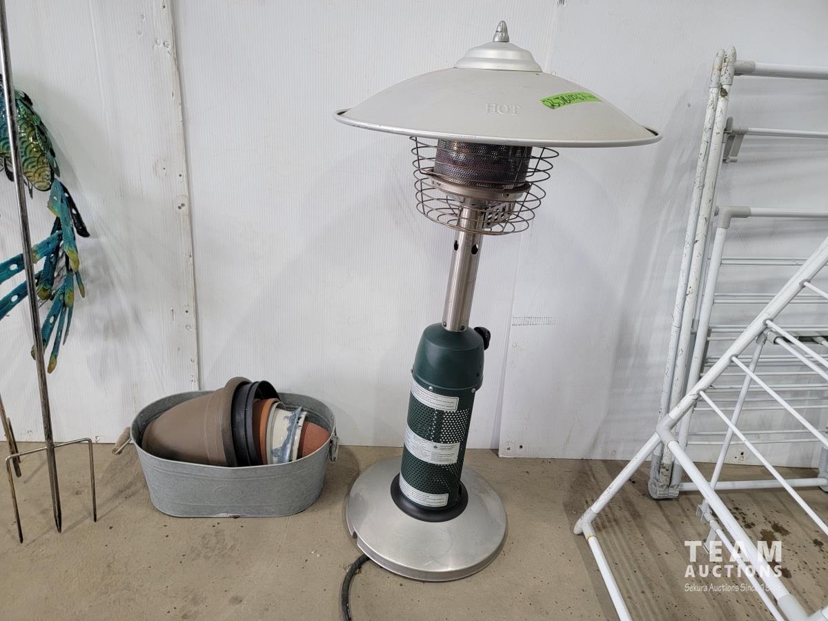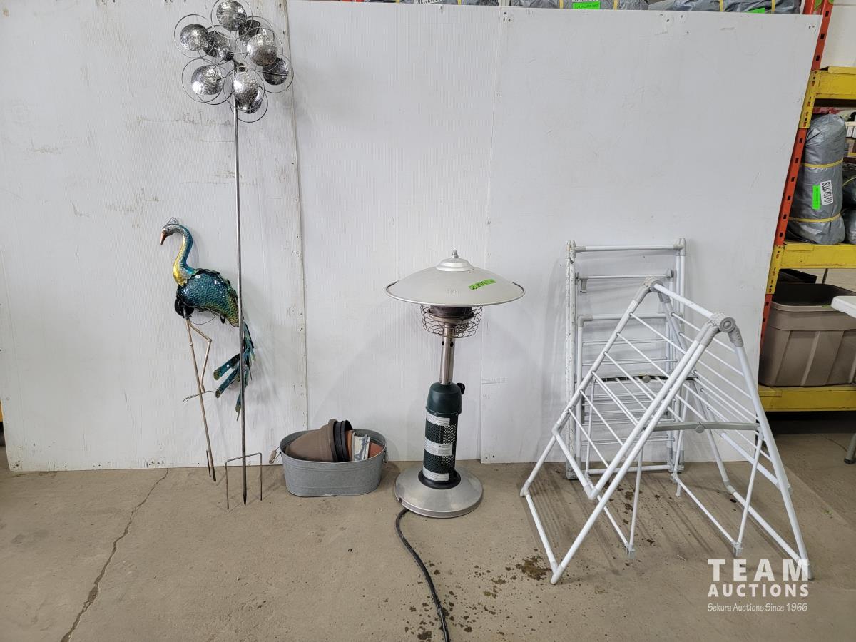 1884 Small Patio Propane Heater, Qty of Flower Pots, Garden Statues and (2) Hangers