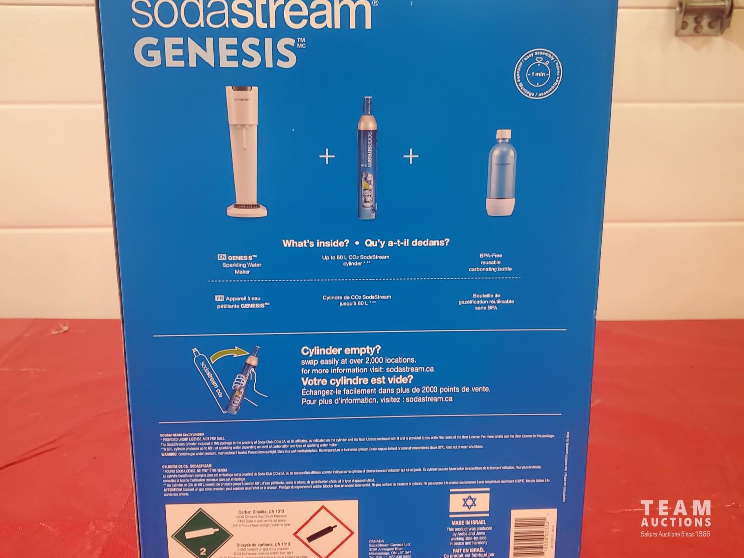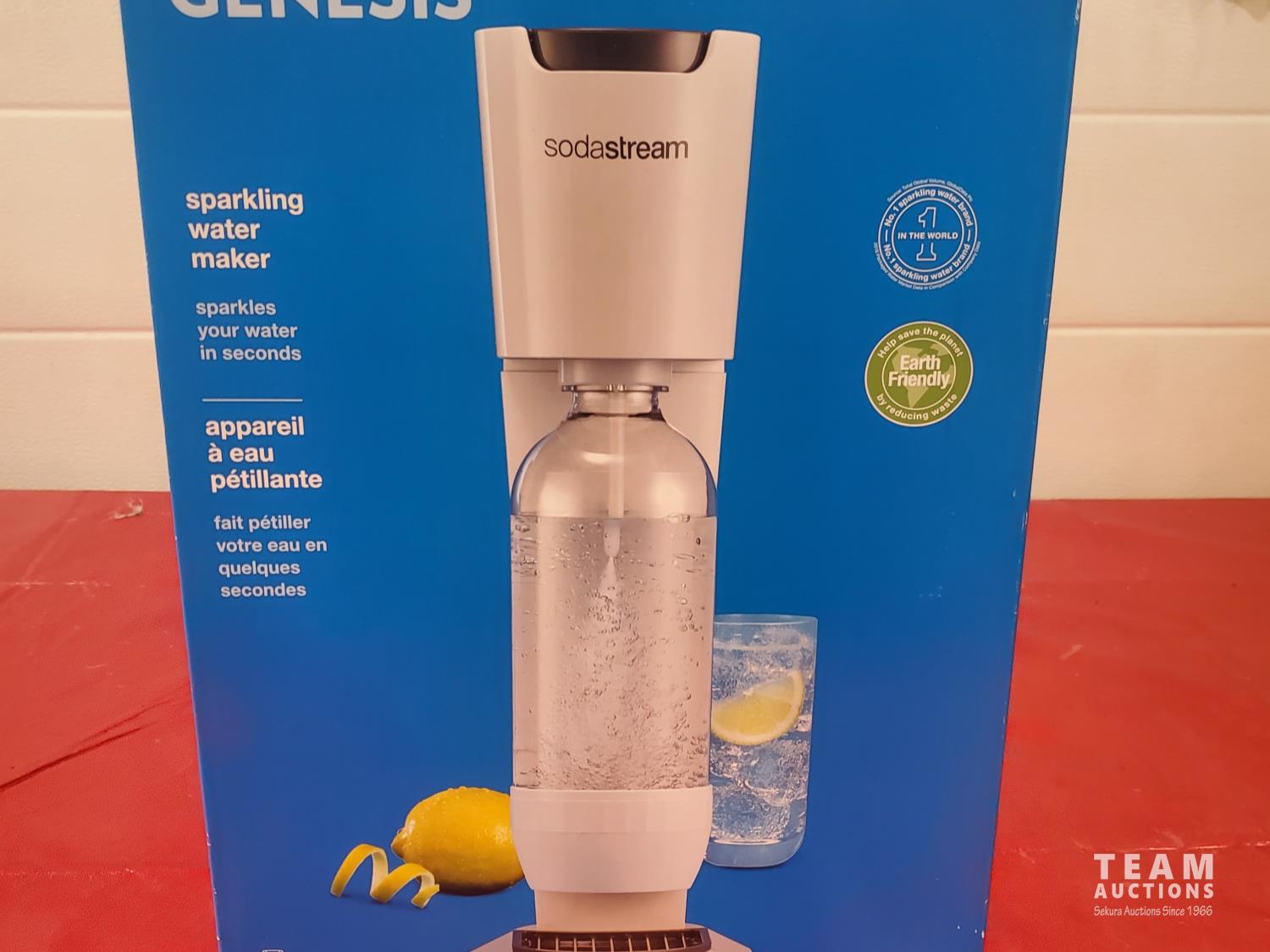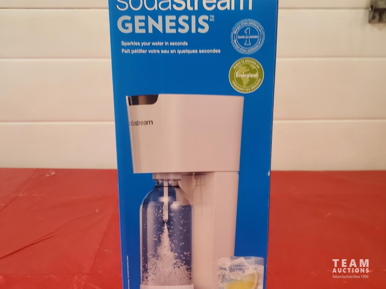 1097 Sodastream Genesis Soda Maker (new in box) and assorted cups