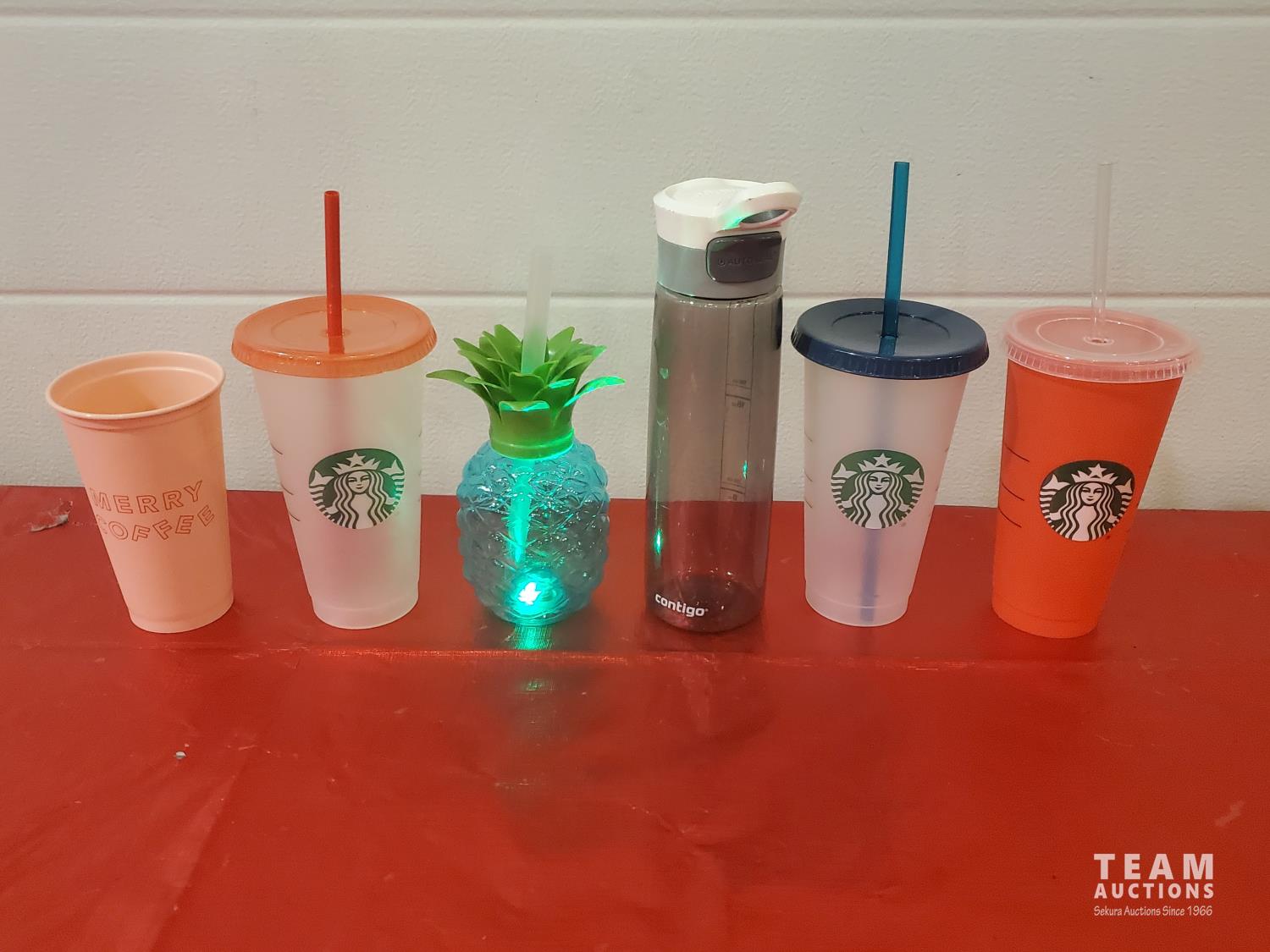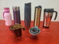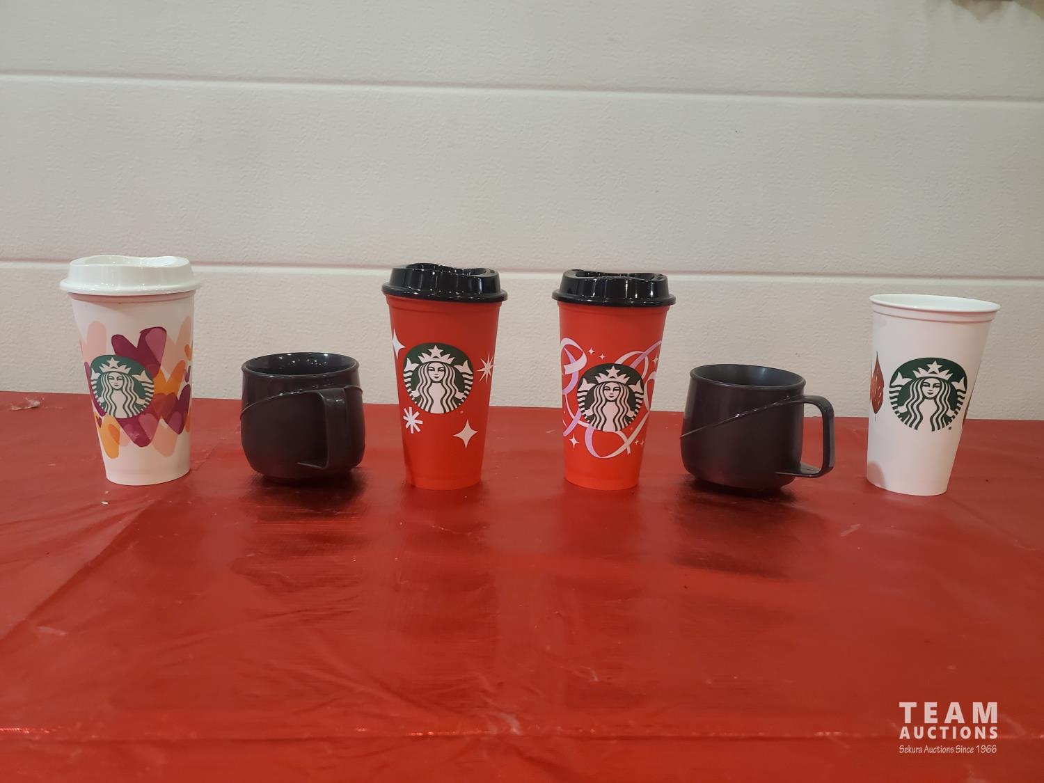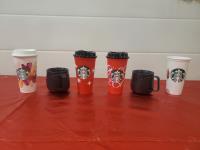 6 Starbucks Hot Beverage Cups/ Warmers, 5 Hot/Cold Vacuum Cups, 6 Summer Drink Cups/ one Flashing.