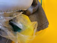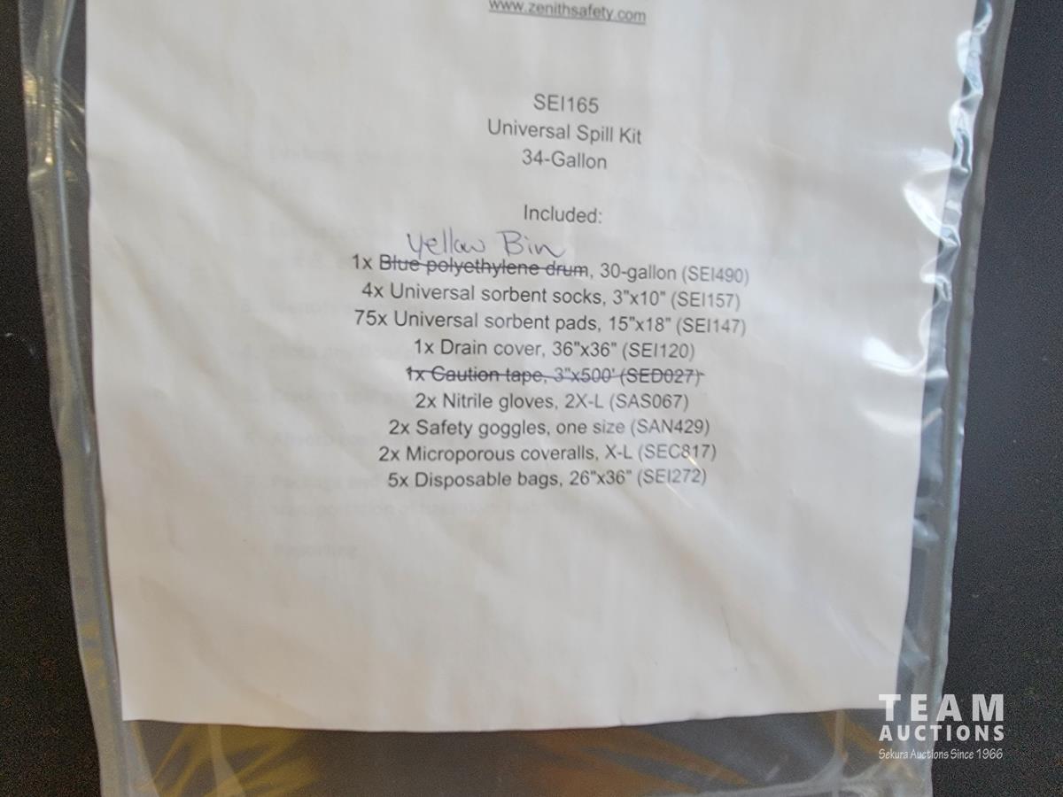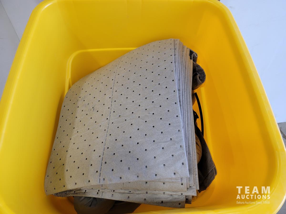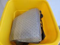 Box of (4) 12 ft Sorbant socks, 30 gallon drum with pads, socks, bags, gloves, coveralls, googles