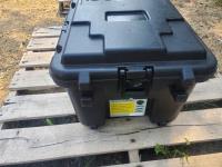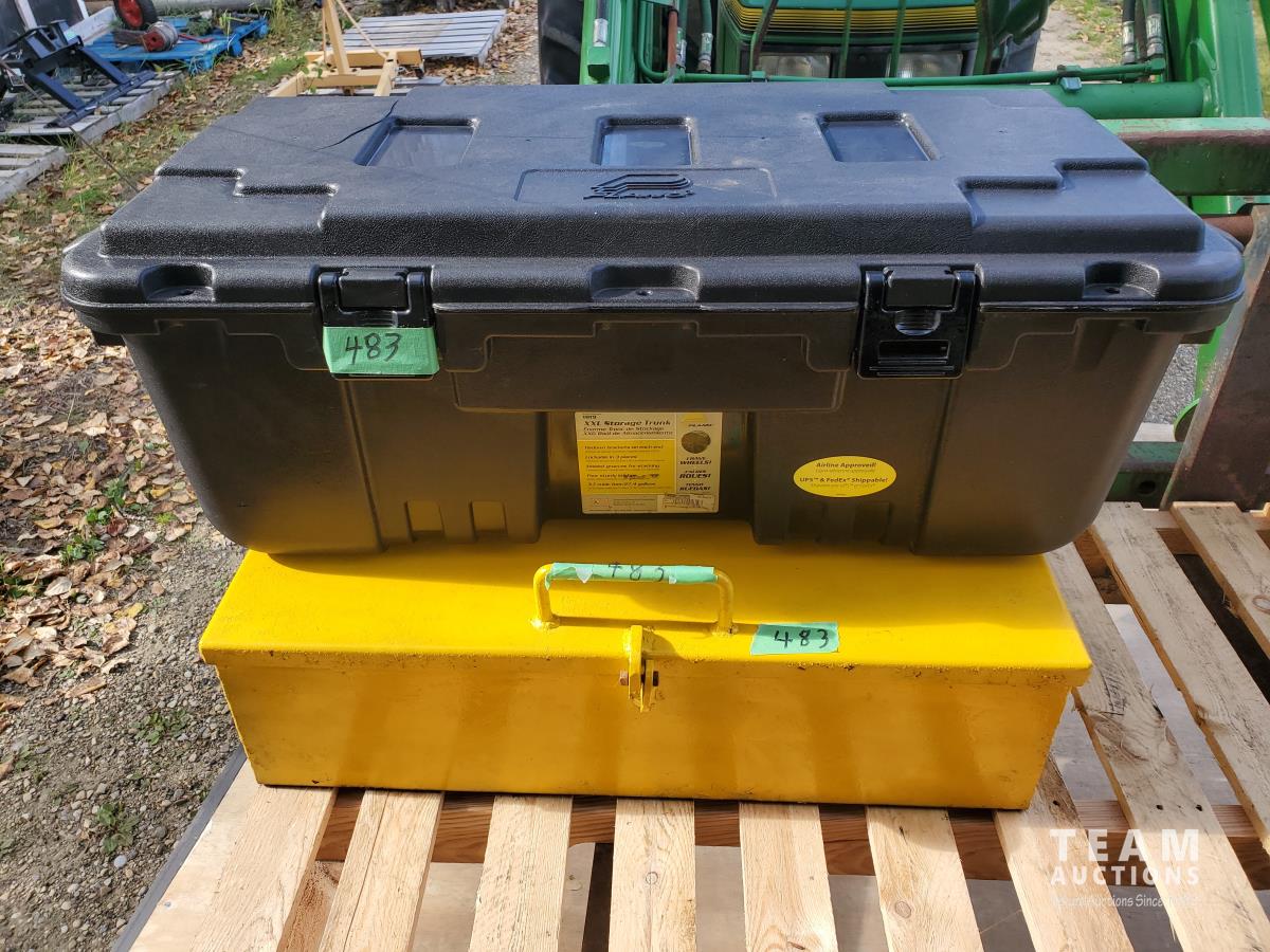 2362 Storage Trunk Plastic Tote and Yellow Heavy Duty Caterpillar Tool Box