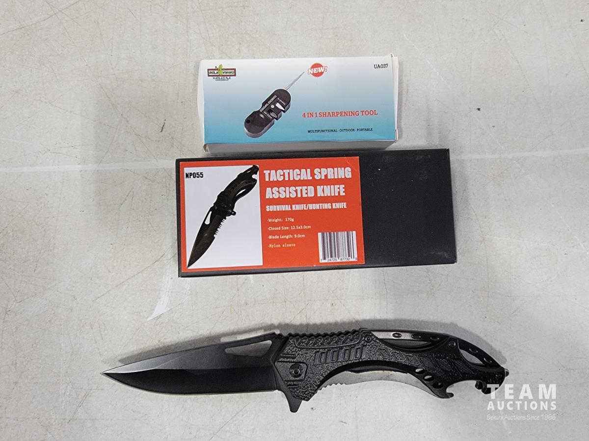 2096 Tactical Spring Assisted Knife and 4-In-1 Sharpening Tool (Unused)