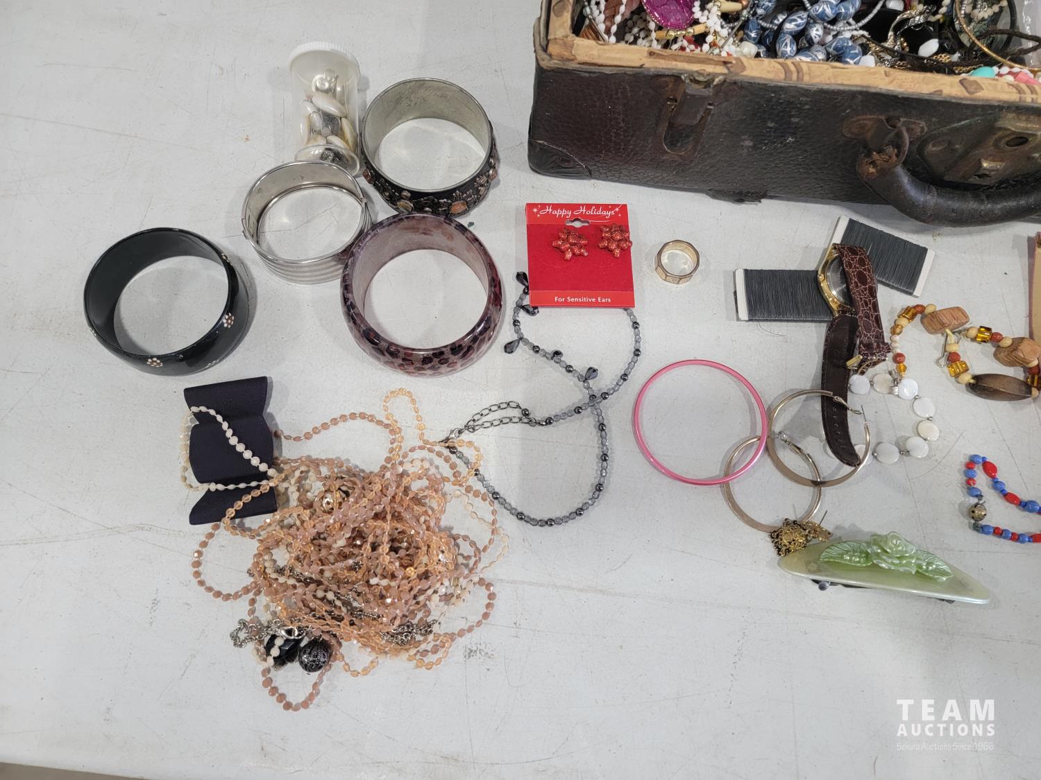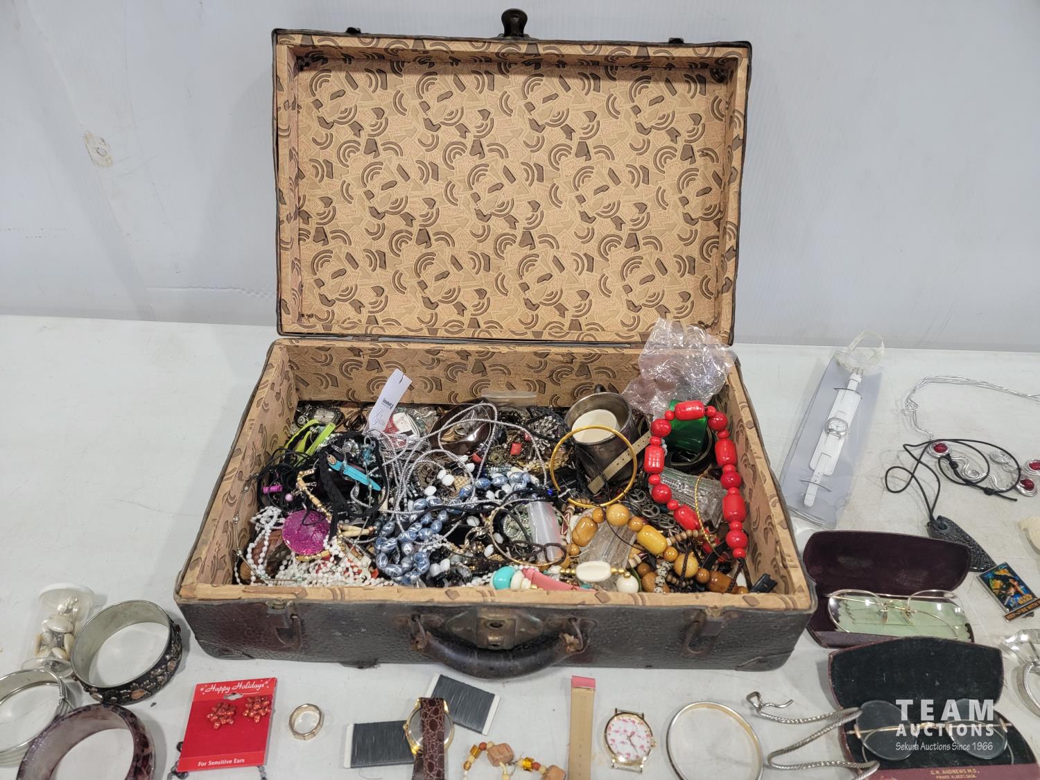 2172 Vintage Suitcase with Various Jewelry and Glasses