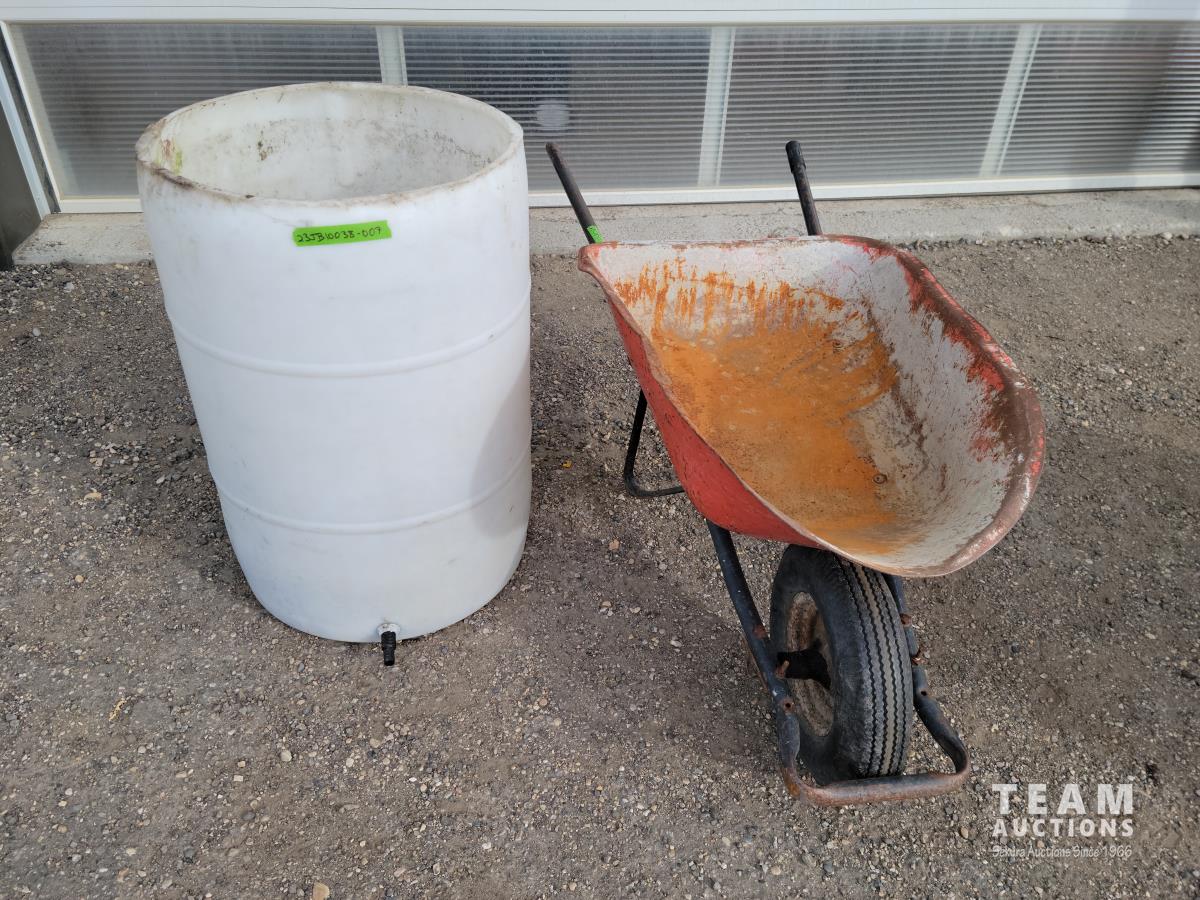 2259 Wheelbarrow and Poly Rain Barrel