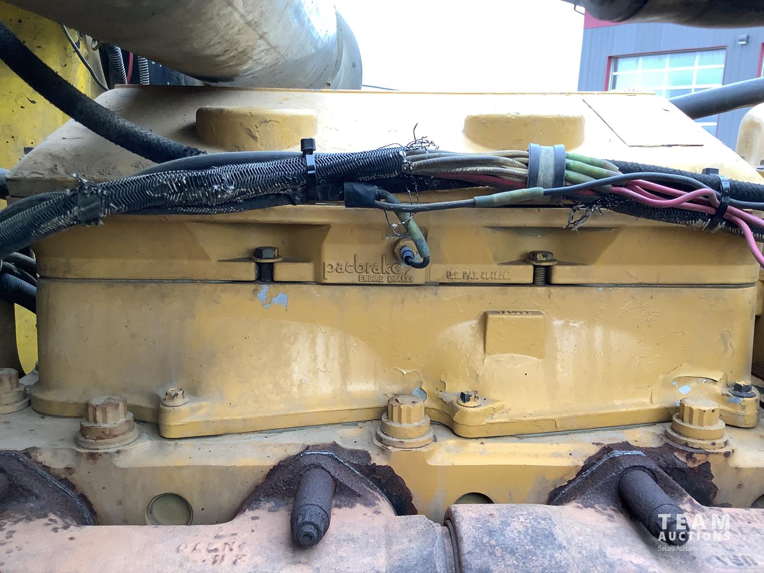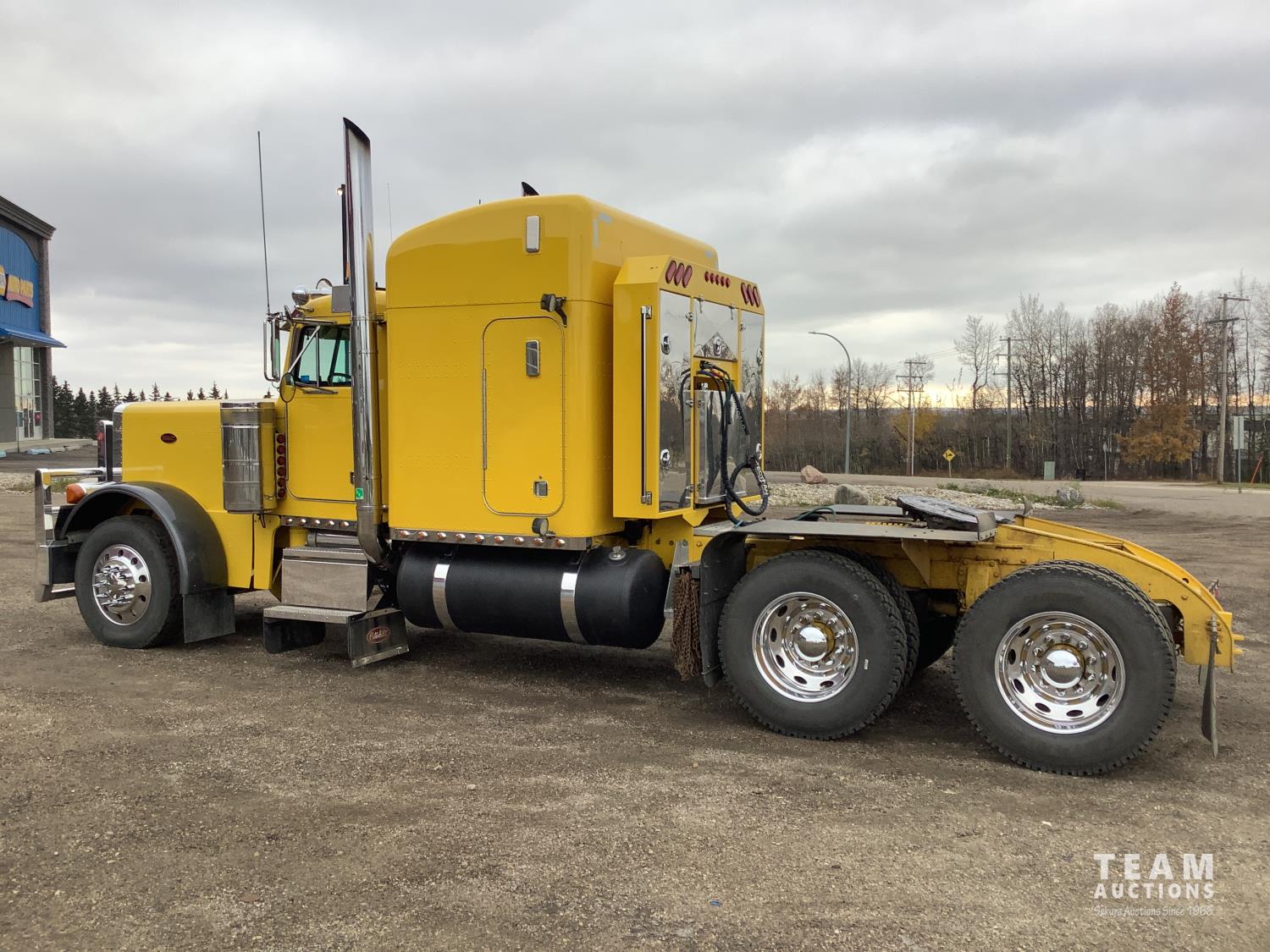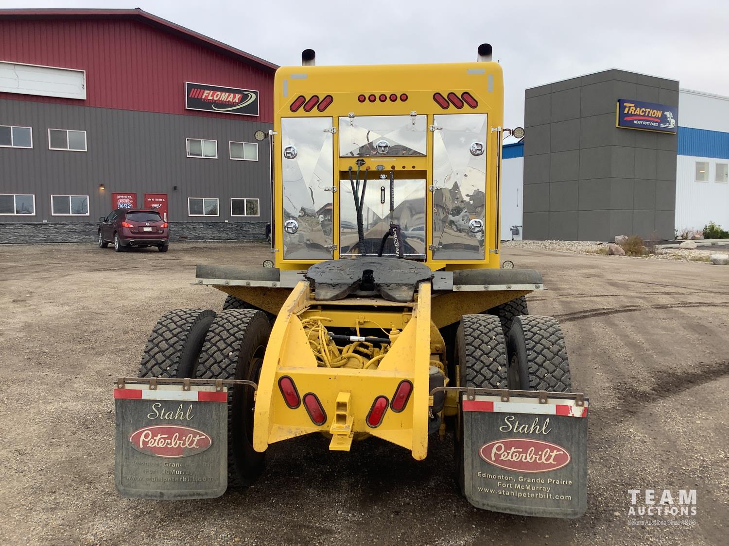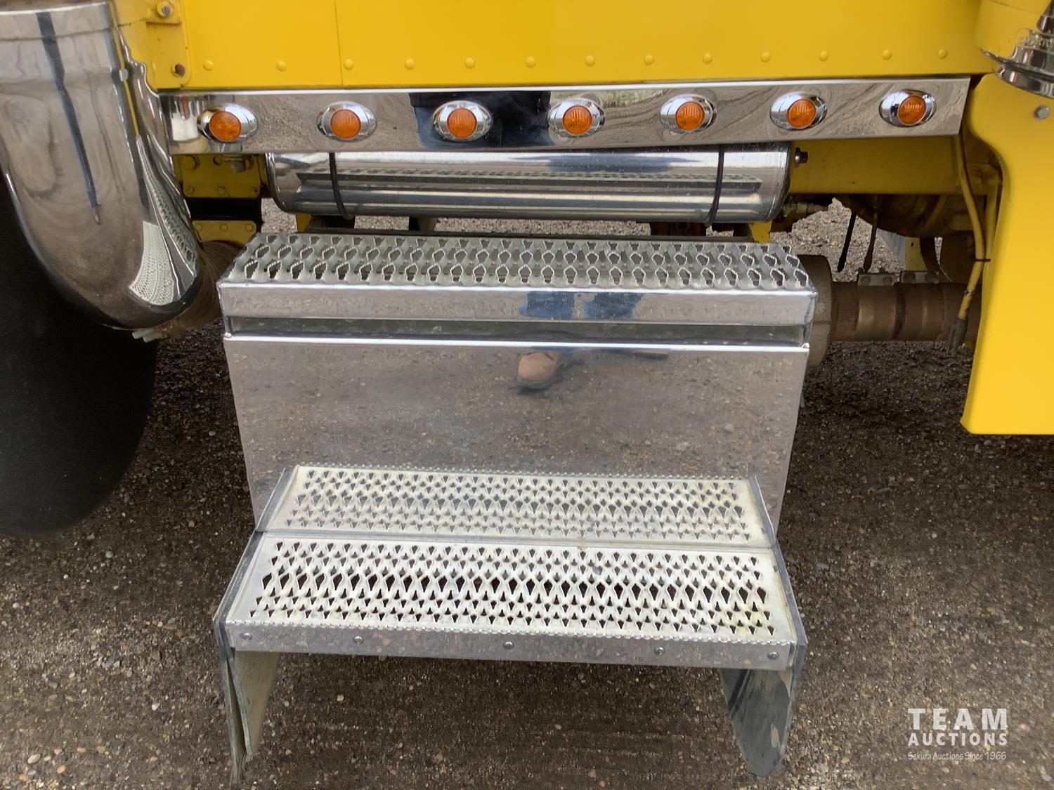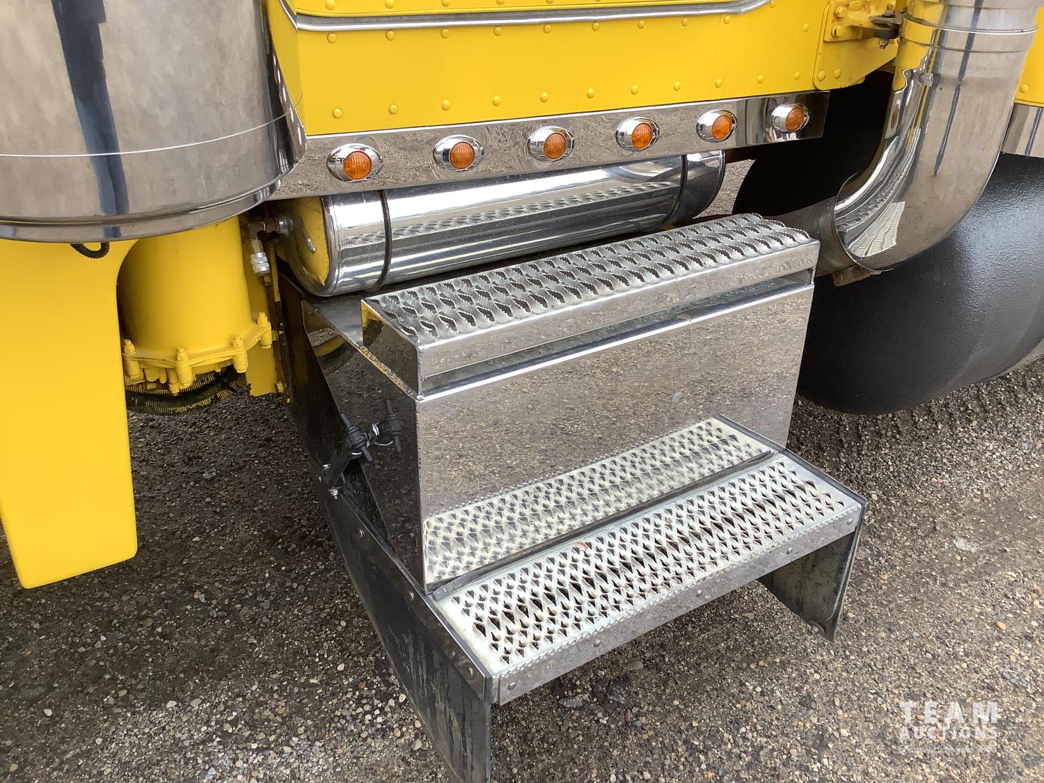 Caterpillar 3406 425 HP engine, engine brake, Eaton Fuller 18 speed transmission, Cat single turbo engine, mid rise sleeper, A/C, leather interior, aluminum moose bumper, headache rack, beacons, chain holders, air sliding 5th wheel, PTO mounted hydraulic pump with tank and hydraulic valve, in cab controls, functional wet kit (wet kit tank and valve haven't been reinstalled but all components are there), winter front, custom built headache rack (in 2021), air ride suspension, 13,000 lb front axle, 46,000 lb rear axles, full lockers, wheel chains, all aluminum wheels, 11R24.5 front tires