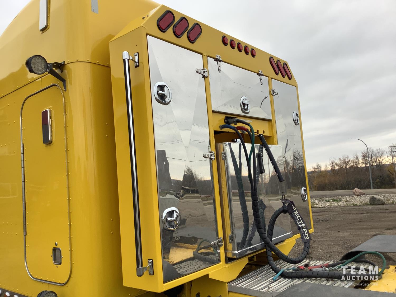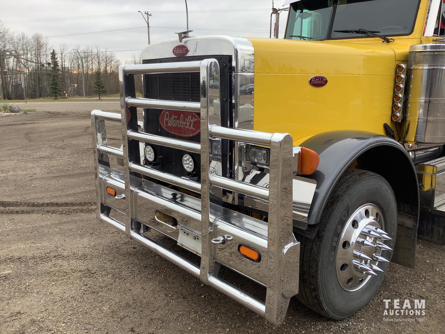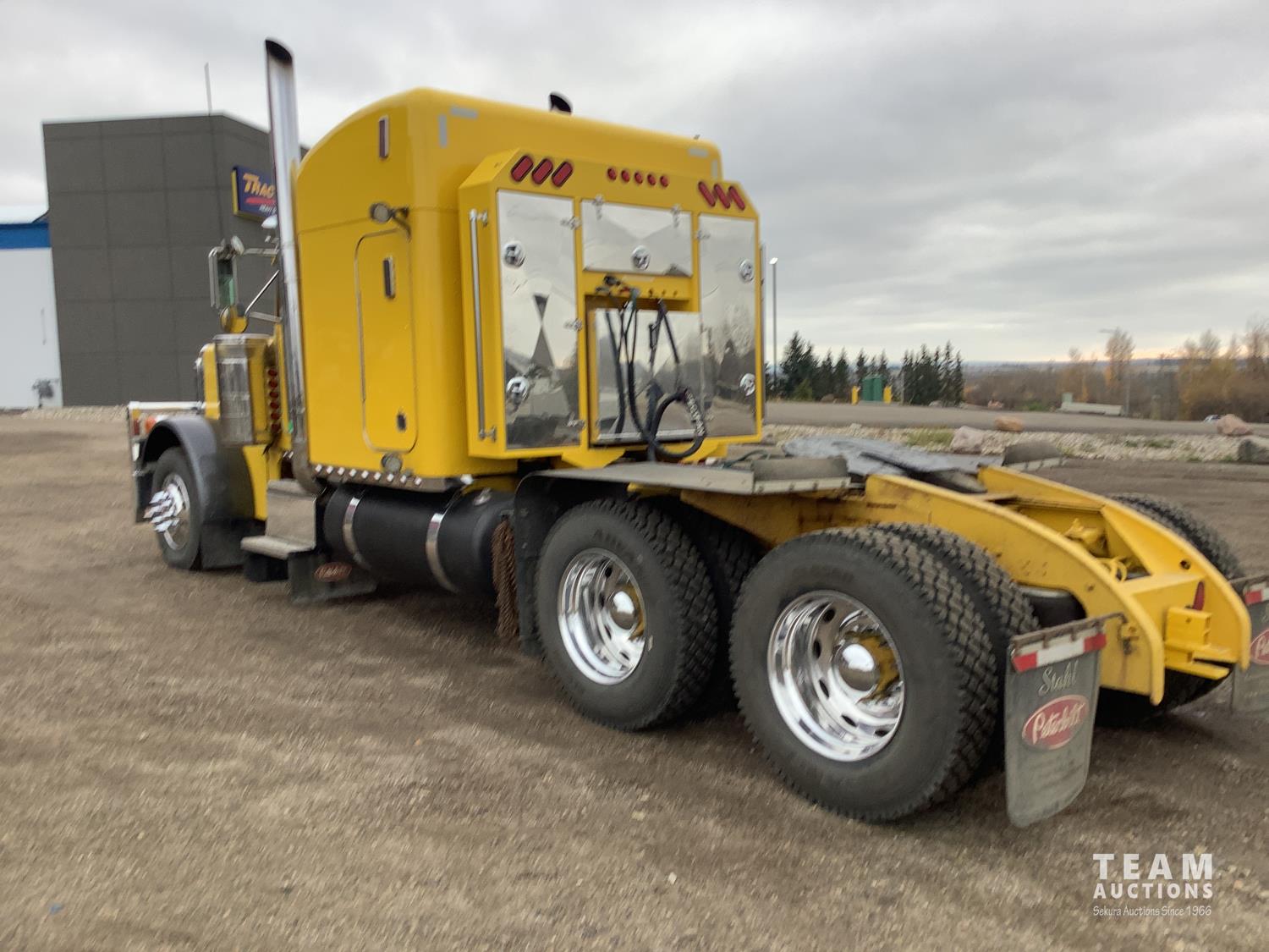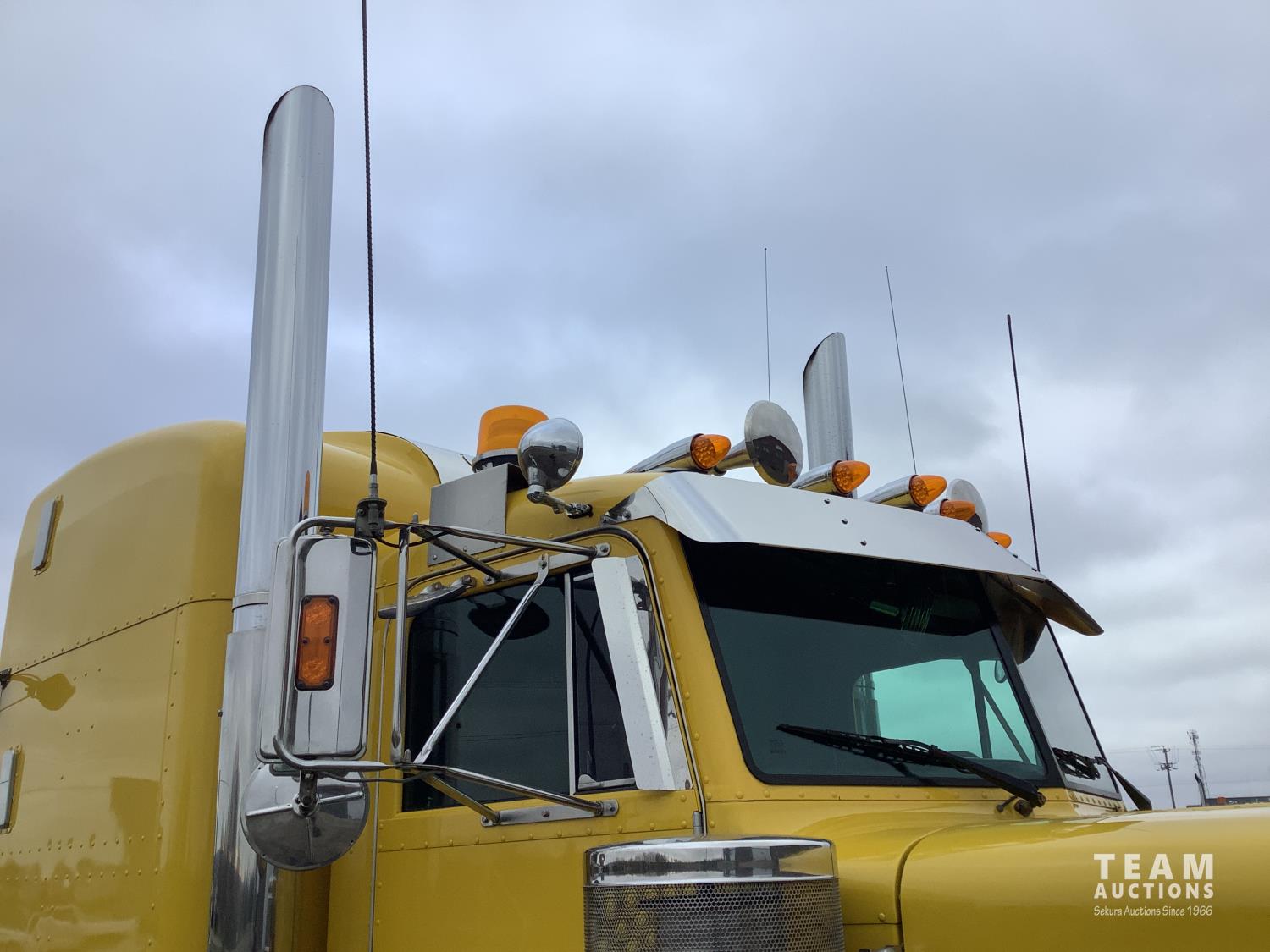 Caterpillar 3406 425 HP engine, engine brake, Eaton Fuller 18 speed transmission, Cat single turbo engine, mid rise sleeper, A/C, leather interior, aluminum moose bumper, headache rack, beacons, chain holders, air sliding 5th wheel, PTO mounted hydraulic pump with tank and hydraulic valve, in cab controls, functional wet kit (wet kit tank and valve haven't been reinstalled but all components are there), winter front, custom built headache rack (in 2021), air ride suspension, 13,000 lb front axle, 46,000 lb rear axles, full lockers, wheel chains, all aluminum wheels, 11R24.5 front tires