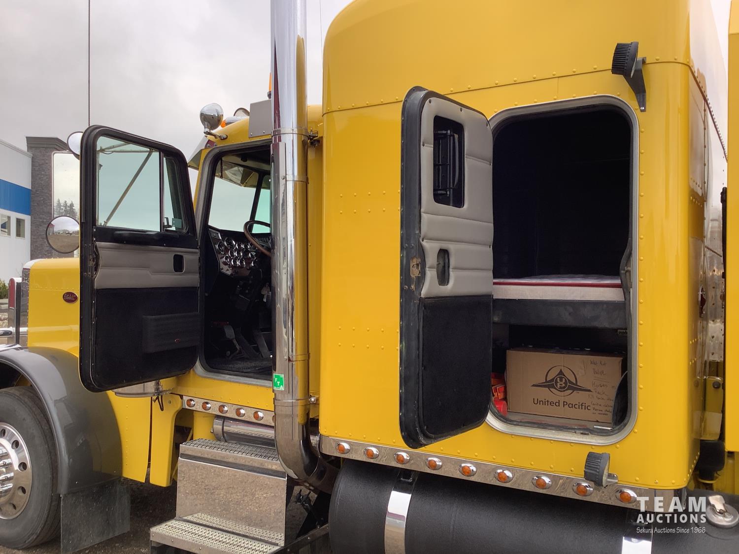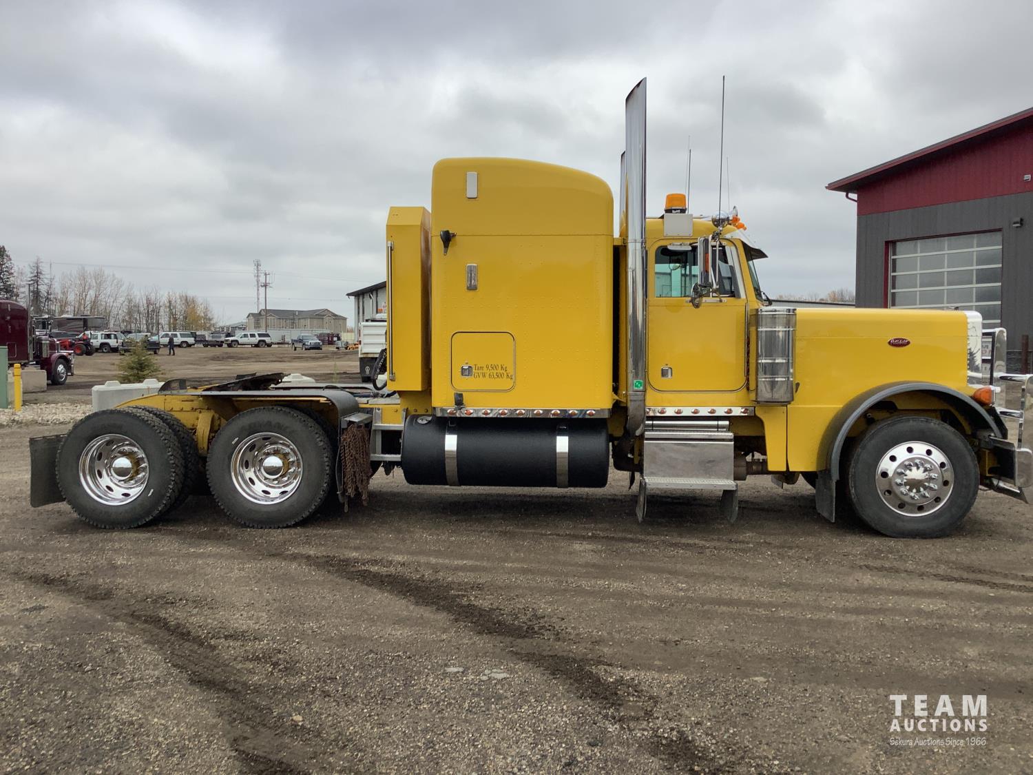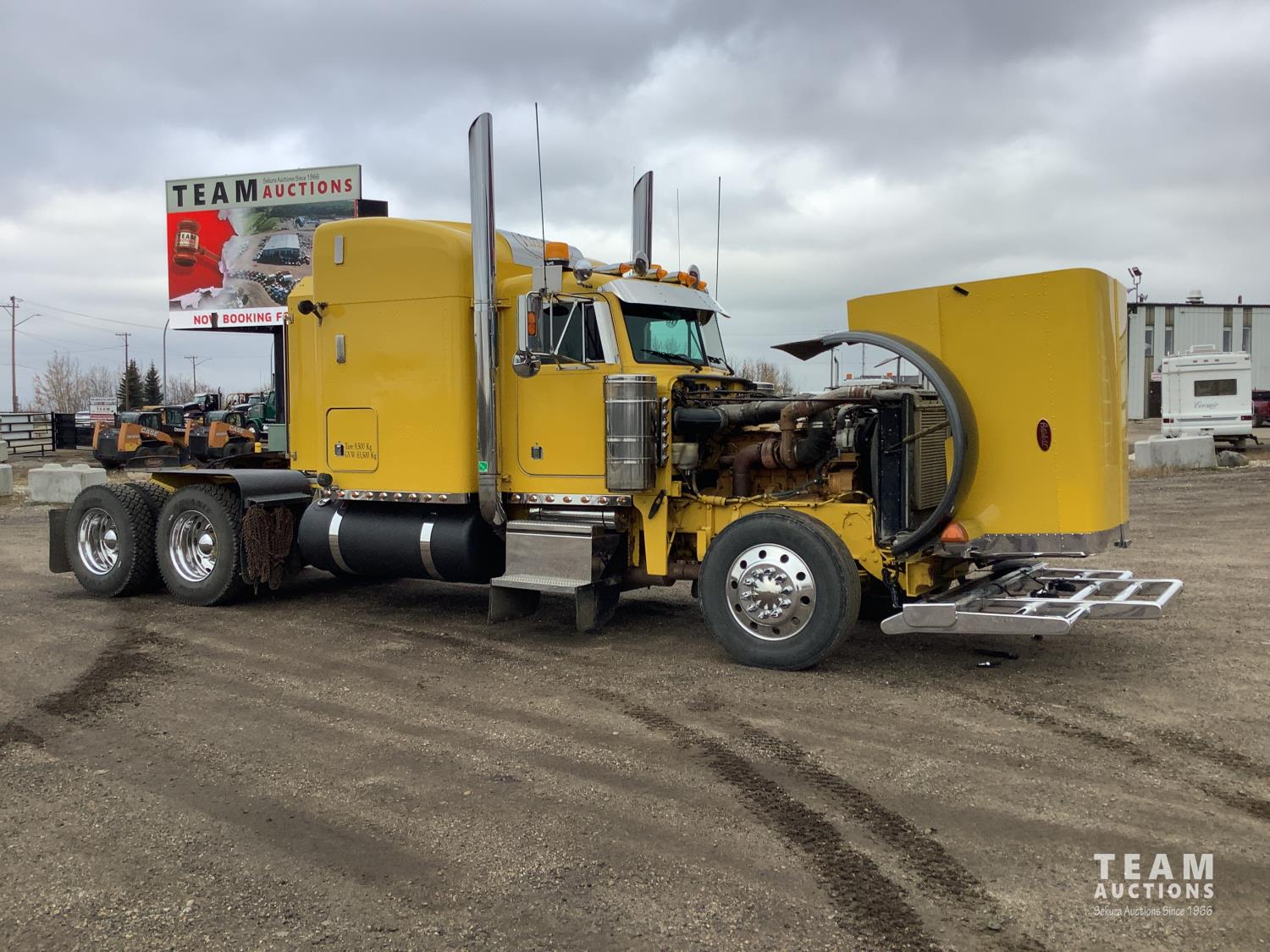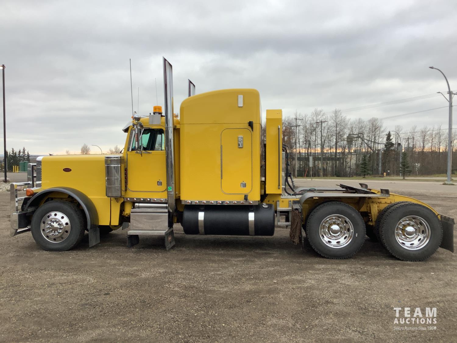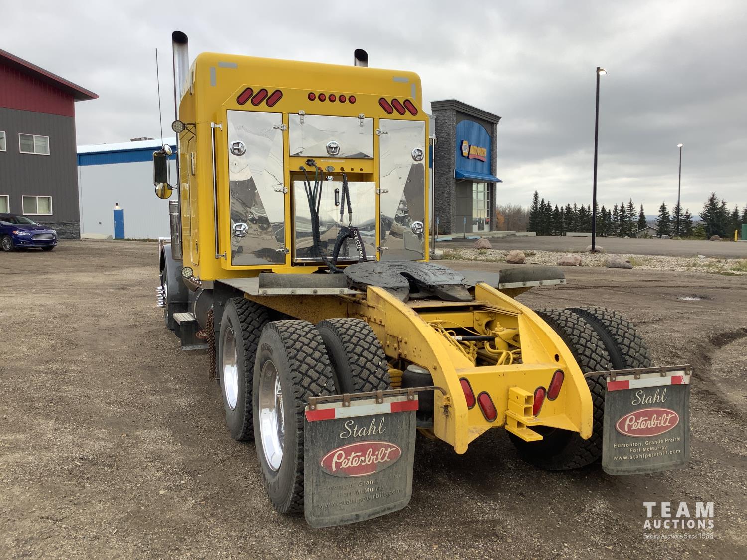 Caterpillar 3406 425 HP engine, engine brake, Eaton Fuller 18 speed transmission, Cat single turbo engine, mid rise sleeper, A/C, leather interior, aluminum moose bumper, headache rack, beacons, chain holders, air sliding 5th wheel, PTO mounted hydraulic pump with tank and hydraulic valve, in cab controls, functional wet kit (wet kit tank and valve haven't been reinstalled but all components are there), winter front, custom built headache rack (in 2021), air ride suspension, 13,000 lb front axle, 46,000 lb rear axles, full lockers, wheel chains, all aluminum wheels, 11R24.5 front tires