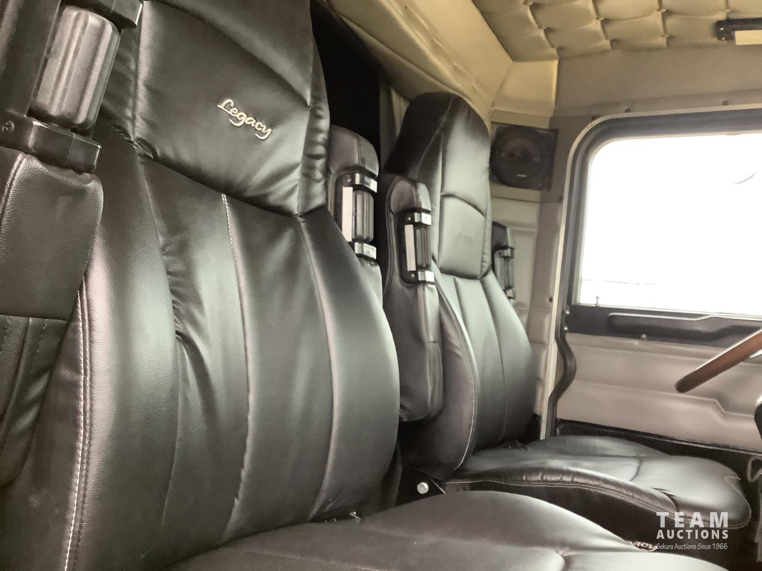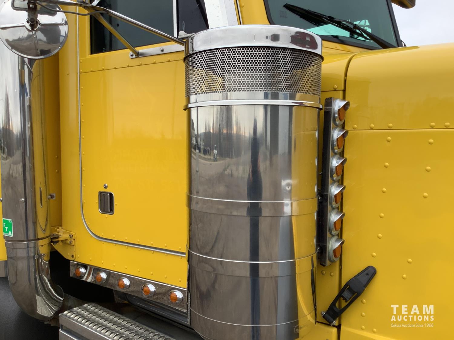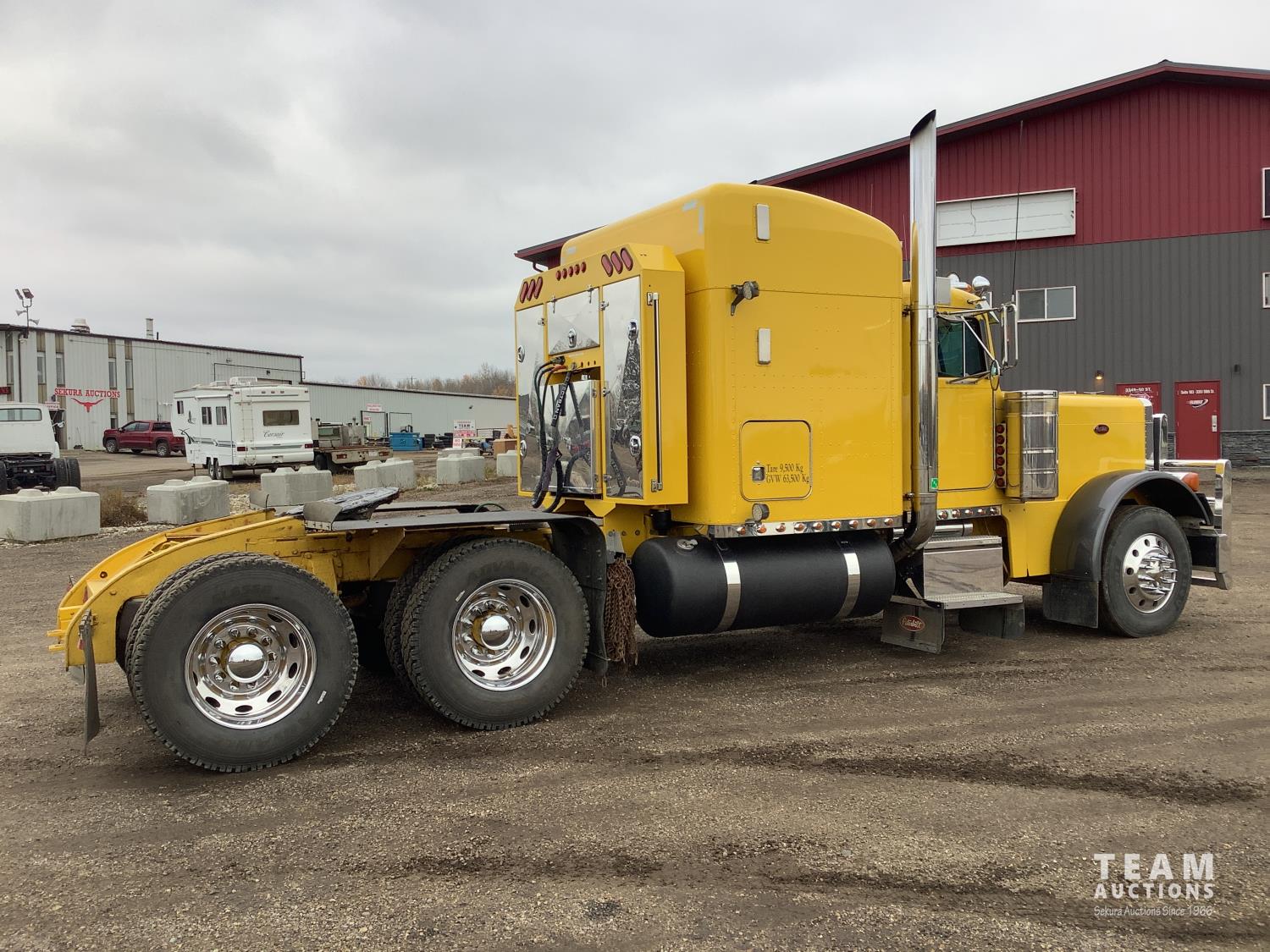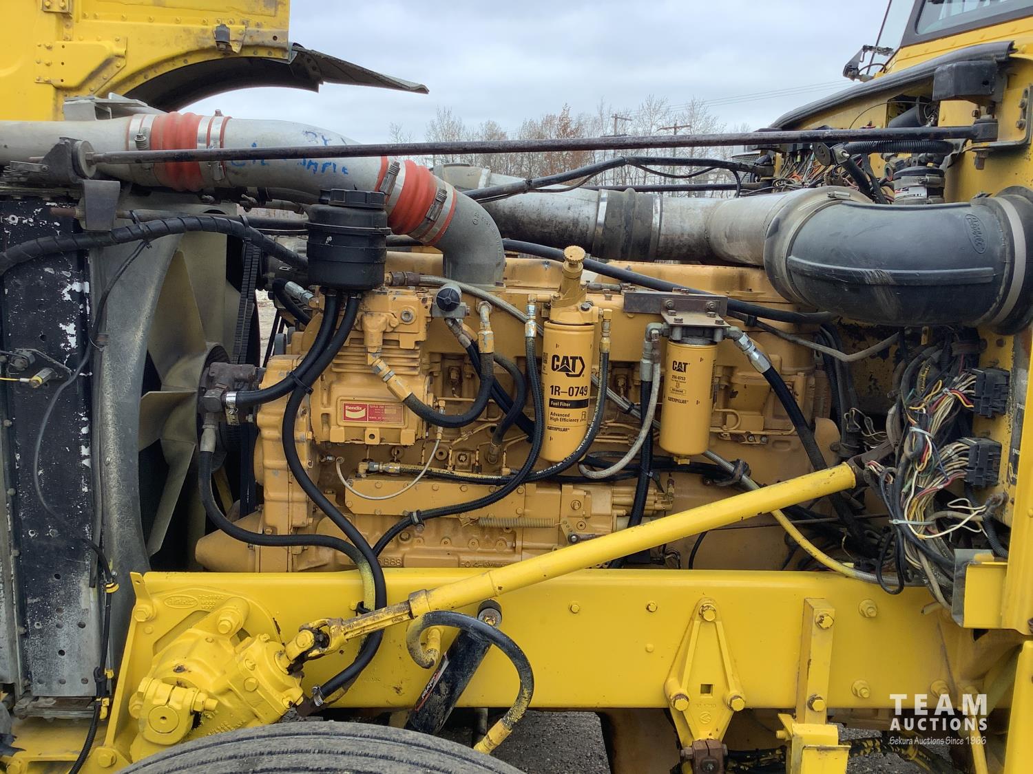 Caterpillar 3406 425 HP engine, engine brake, Eaton Fuller 18 speed transmission, Cat single turbo engine, mid rise sleeper, A/C, leather interior, aluminum moose bumper, headache rack, beacons, chain holders, air sliding 5th wheel, PTO mounted hydraulic pump with tank and hydraulic valve, in cab controls, functional wet kit (wet kit tank and valve haven't been reinstalled but all components are there), winter front, custom built headache rack (in 2021), air ride suspension, 13,000 lb front axle, 46,000 lb rear axles, full lockers, wheel chains, all aluminum wheels, 11R24.5 front tires