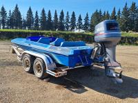Yamaha 200TX RR V6 200 outboard motor, electric trim, hydraulic lift trim, fixed mount manual adjust trim tabs, ski-pole, 22 ft tandem axle trailer (vin nvs), P225/70R15 tires, spring suspension