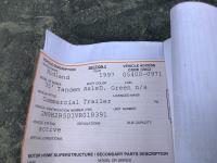 This trailer was laid on it's side, hydraulic cylinder needs repair, frame has small twist in it but box still goes up and down. Registration is still active.