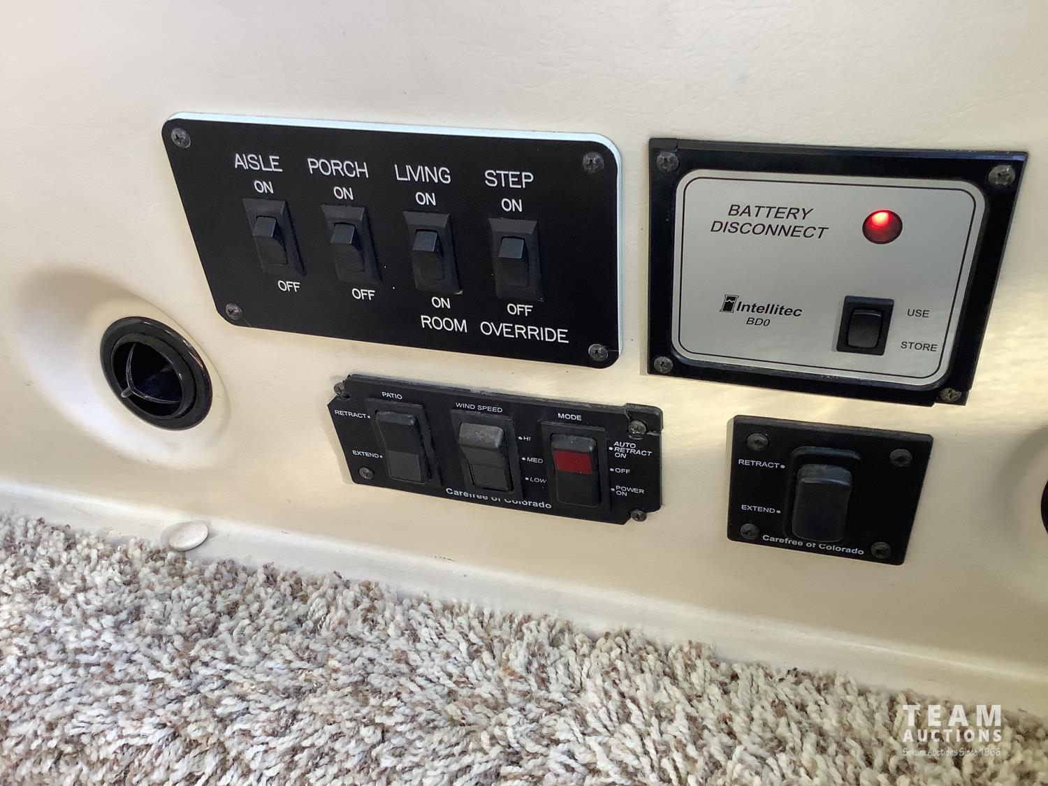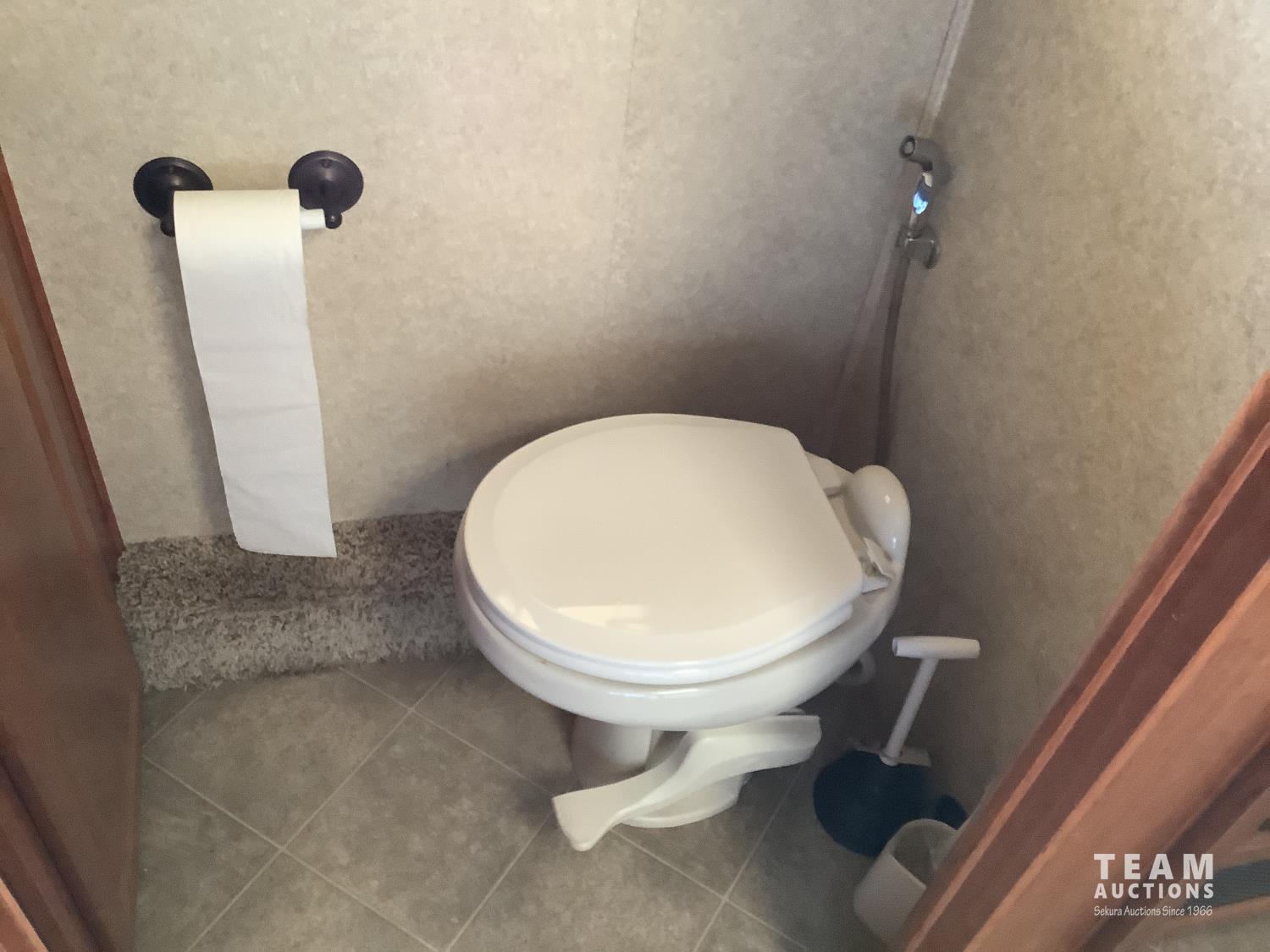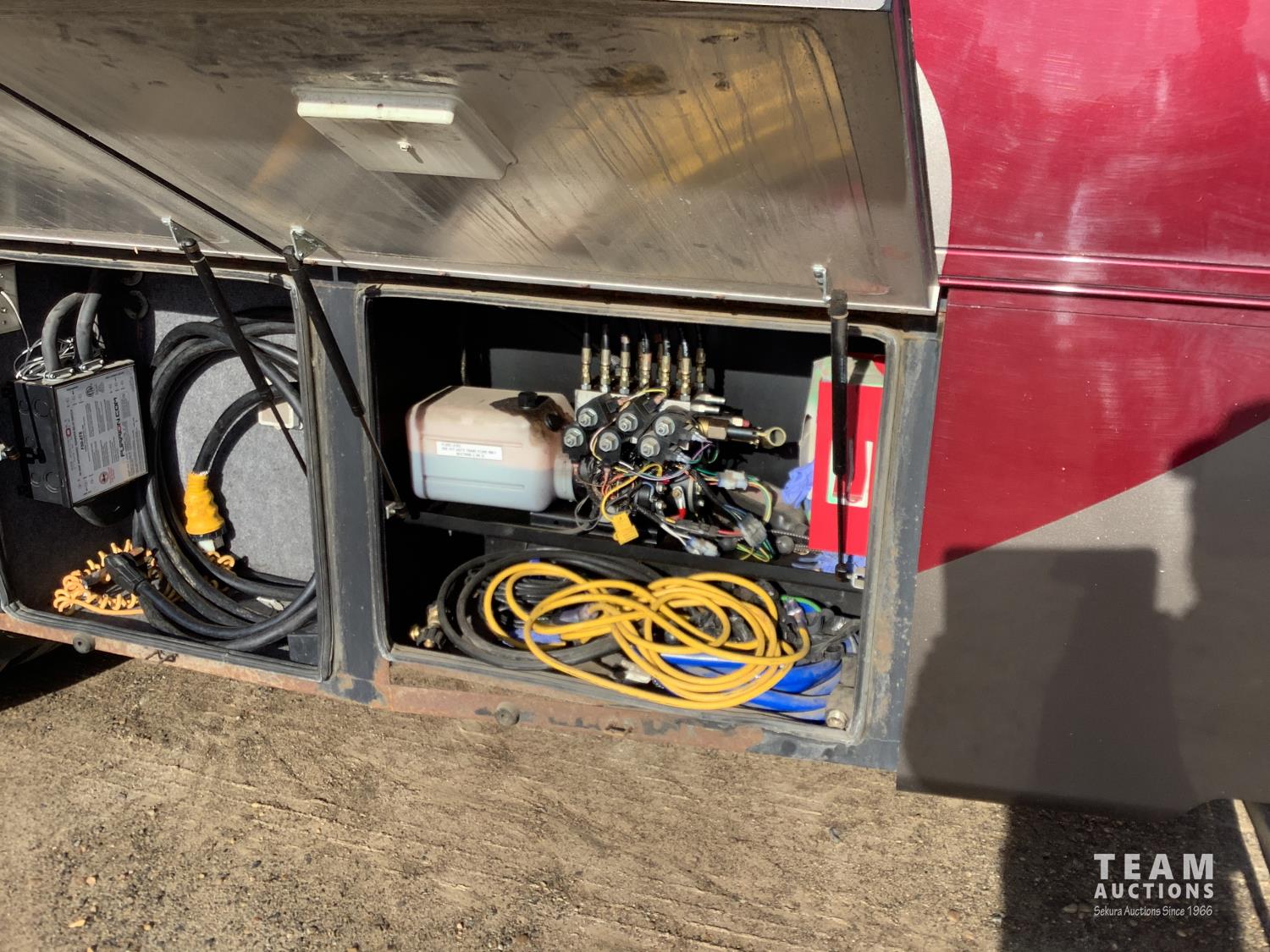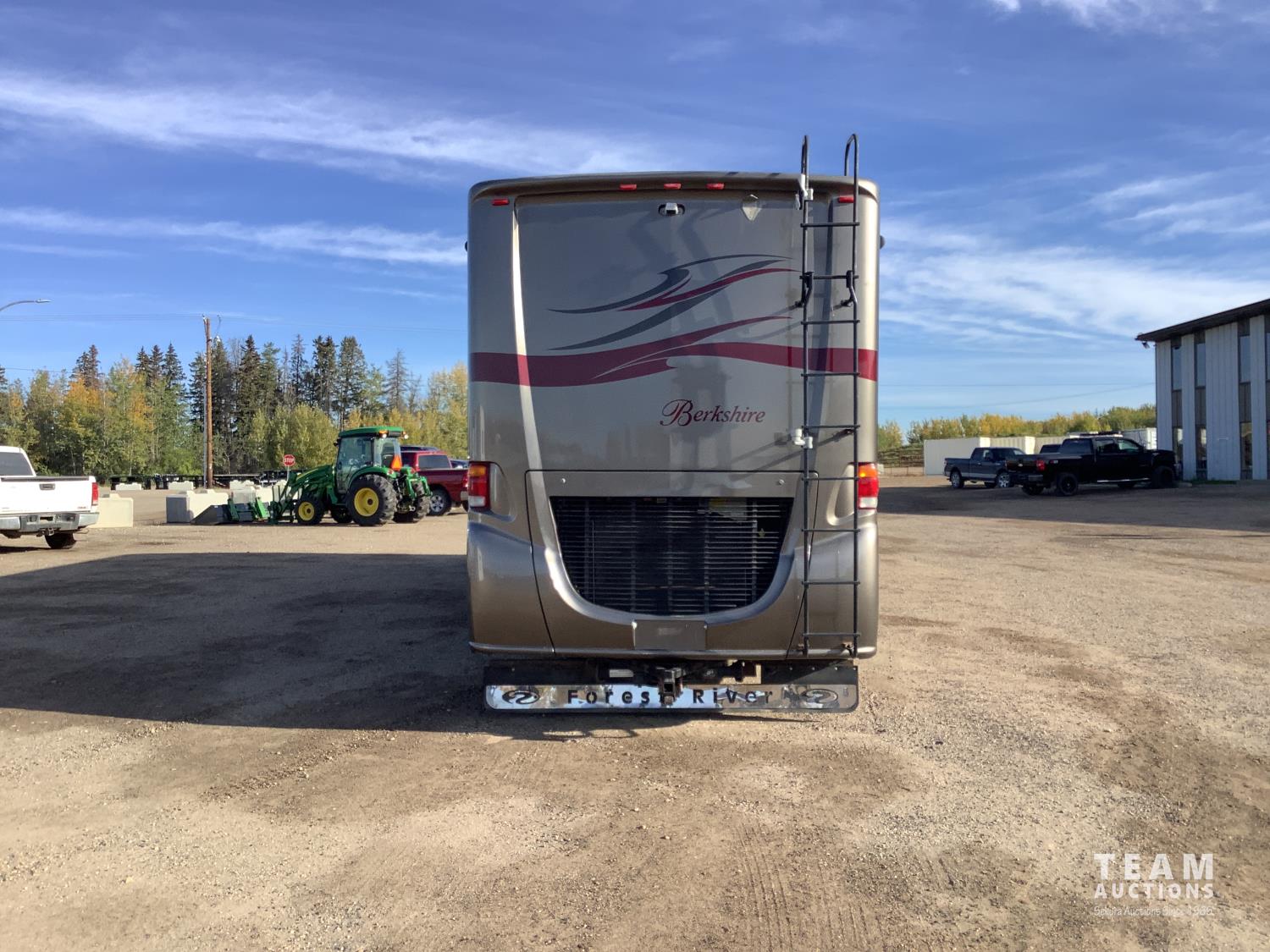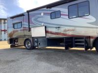 Cummins 6.7 Liter 340 H. P engine, Allison automatic transmission, air ride suspension, 10,415 lb front axle, 17,550 lb rear axle, (2) rooftop A/C units, (4) slideouts, rear bedroom with queen size bed, plumbed for washer and dryer, rooftop automatic satellite dish, microwave, stove, 2 way large fridge, loveseat, recliner, bathroom, tall shower, sink, toilet, fan, outside shower, large electric awning, small electric over door awning, (2) TV's, power inverter, all new house and engine batteries, all operators manuals, (2) remotes, Onan onboard 8,000 Diesel Generator with 599 hrs, 255/80R-22.5 front tires, 275/70R-22.5 rear tires