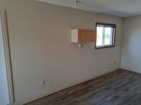 Sloped roof, eaves troughs, metal siding, 6.5 inch x 12 inch skid beams, 1 door, 3 windows, exterior electrical outlets, exterior lights, open floor plan, recently refurbished with new flooring, paint and stipple, comes with large roll of 5 wire cable for rig up.