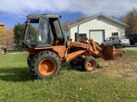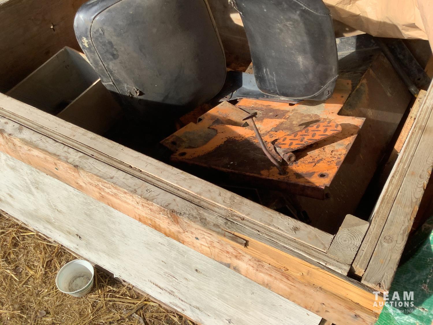 Engine will run, transmission is apart. Parts are in a wood crate, backhoe attachment is there, some hydraulic cylinders. One digging bucket. The loader unit and parts were stored inside till a few weeks ago. Buyer will need to load unit on his own. If buyer calls ahead they may line up a loader, no guarantee. All sells as one lot as is where is. This is a estate sale. We don’t know what exactly is wrong with the unit Mr. Wiebe passed away a couple of years ago.