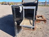 2 extension sections, out riggers, dual side controls, comes with truck mount tool box with base mount for picker, 30 inch x 91 inch x 7 ft tall, spare tire holder, sliding drawer tool compartments, lights.