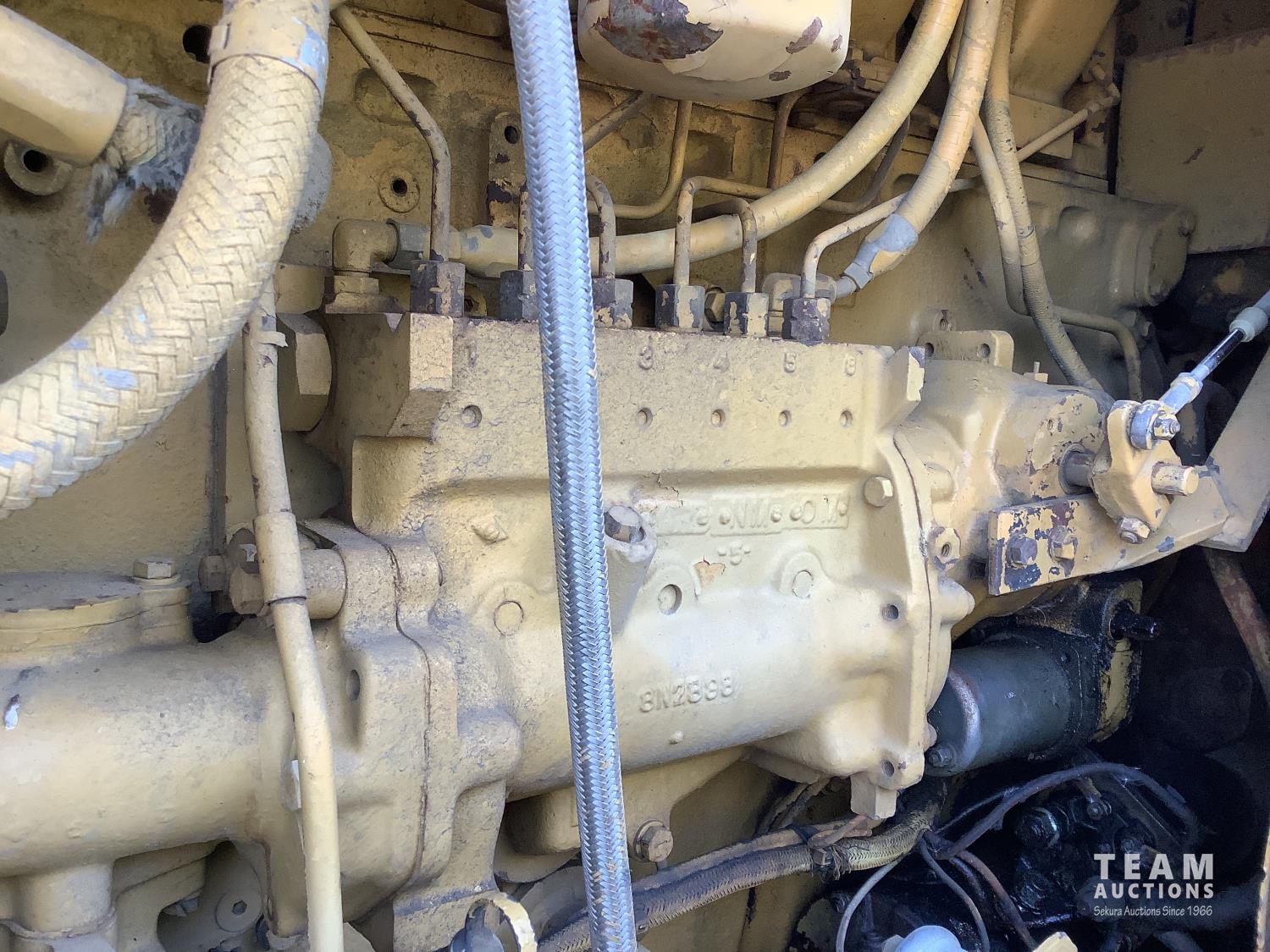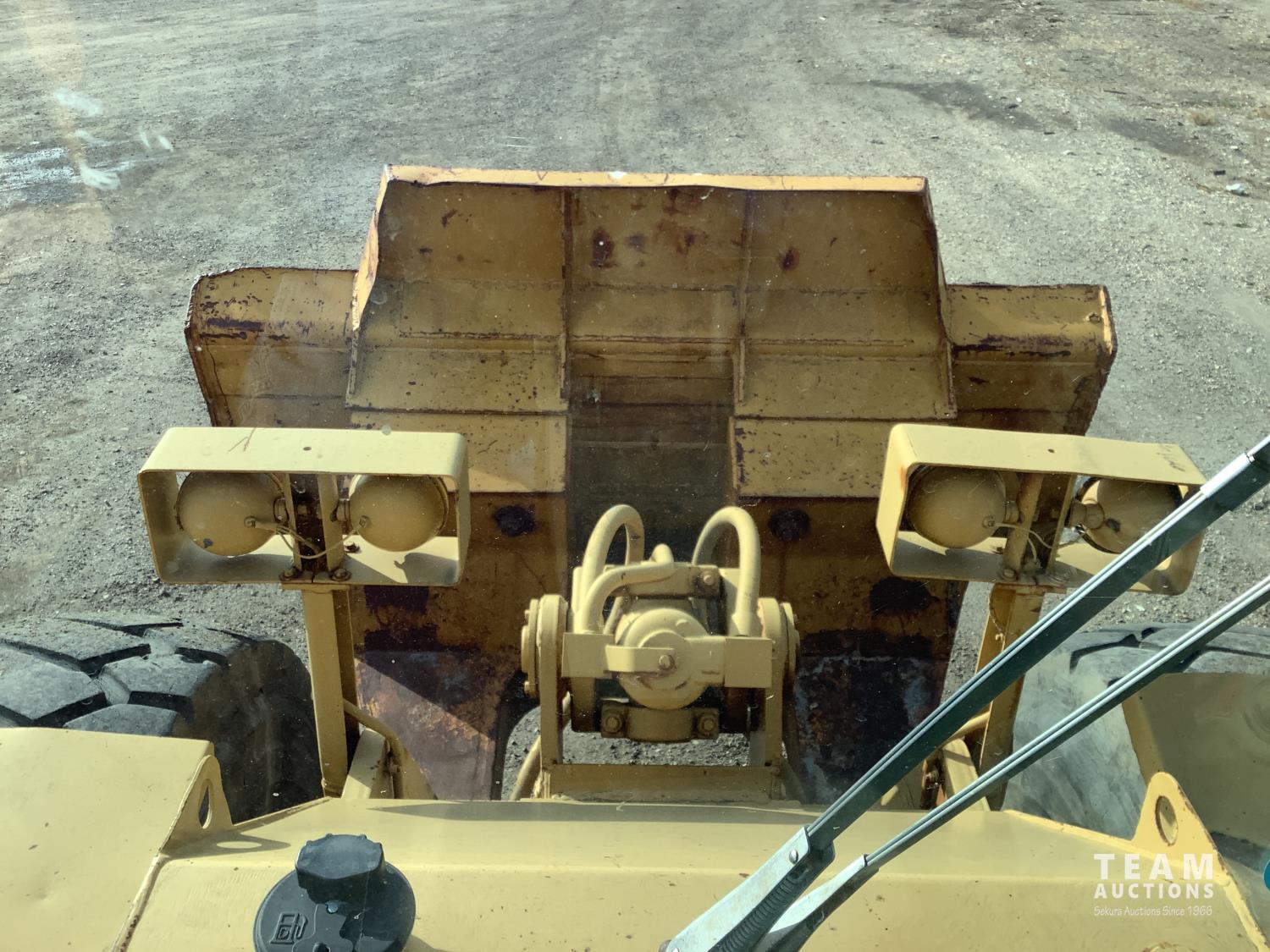 3406 caterpillar 14.6 Liter engine, 4 speed single lever power shift transmission, hydraulic 10 ft blade with rubber cushion blocks, cab, factory ROPS protection, rear tow hitch, 4 wheel oil- immersed multiple disc brakes, master switch, good batteries, 29.5X25 tires