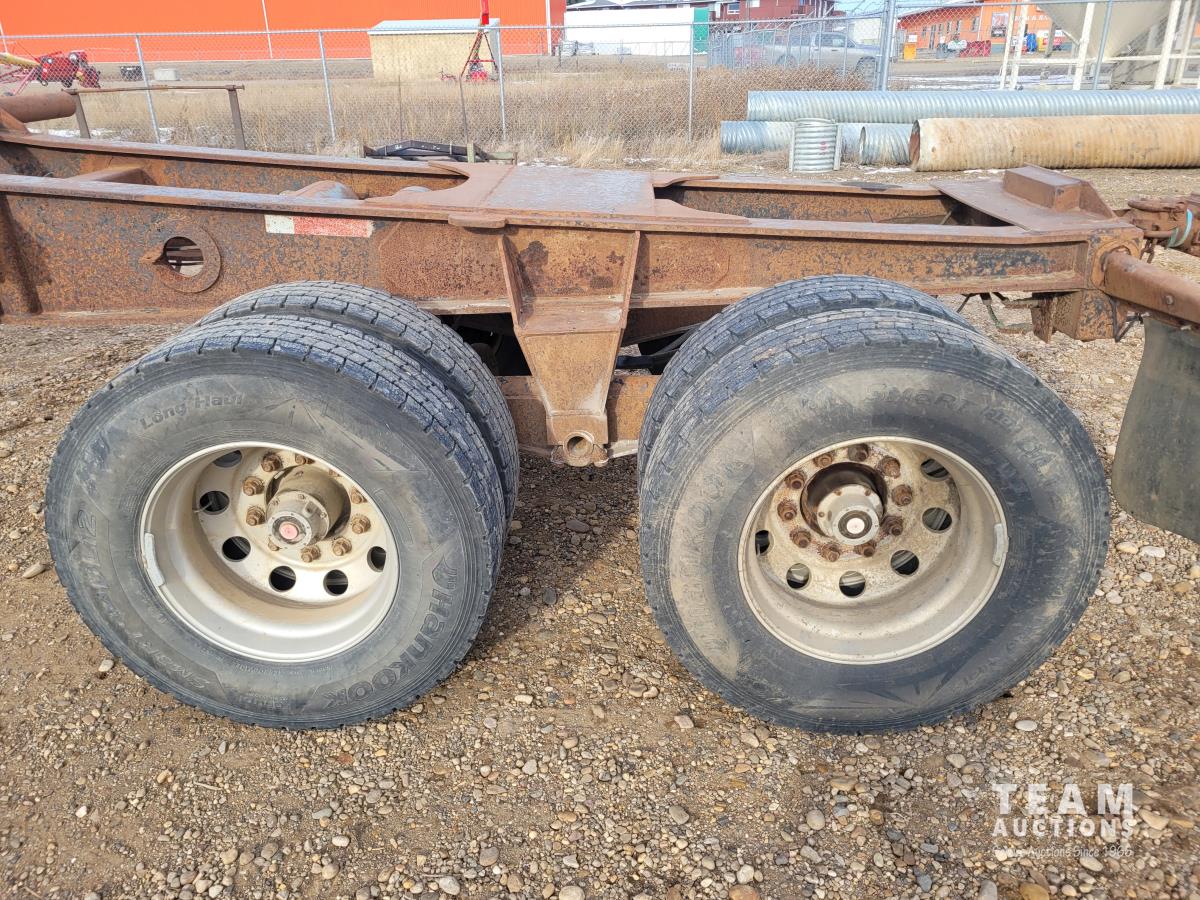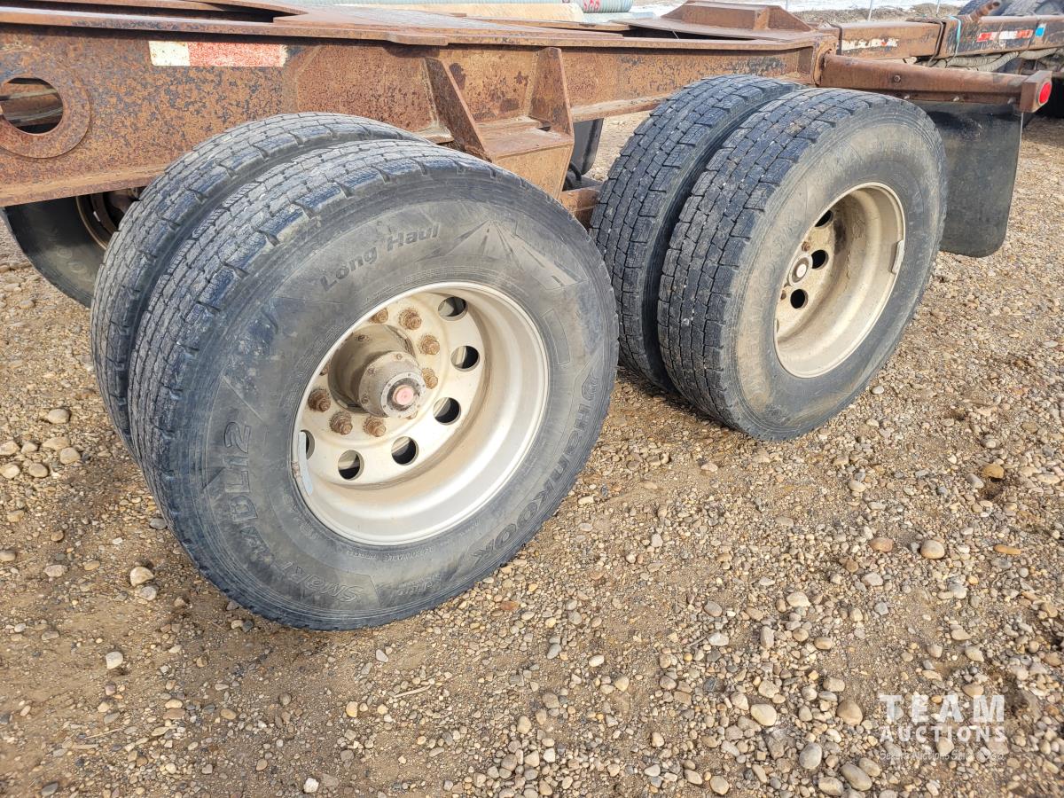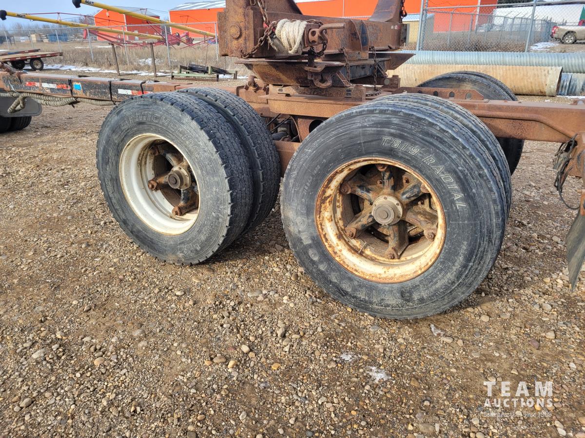 air sliding 5th wheel adjustable plate,10 ft wide swivel log bunk, folding stakes, 1991 Peerless R2500 Pole trailer, telescopic pole 8 1/2 wide log bunk , 11R24.5 tires