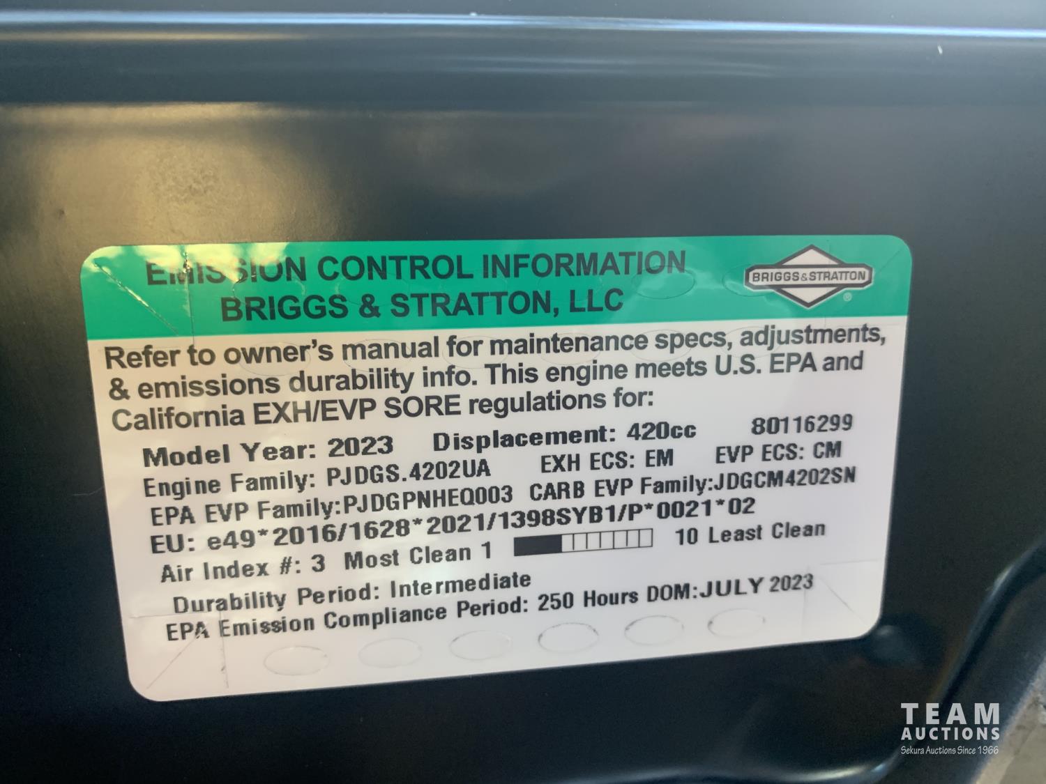 Equipment located at Team Auctions Fairview consignment yard can be loaded out Nov 8 - 10 from 9 AM - 6 PM, extended sale hrs include Sat, Nov 11, from 9 AM - 3 PM, closed Sun, Nov 12, also Mon Nov 13 in lieu of Remembrance Day, and all subsequent weekends. Offsite loadout will be by appointment by calling the listed contact at the phone number provided. Buyer or his transporter will require a paid invoice to have items released.