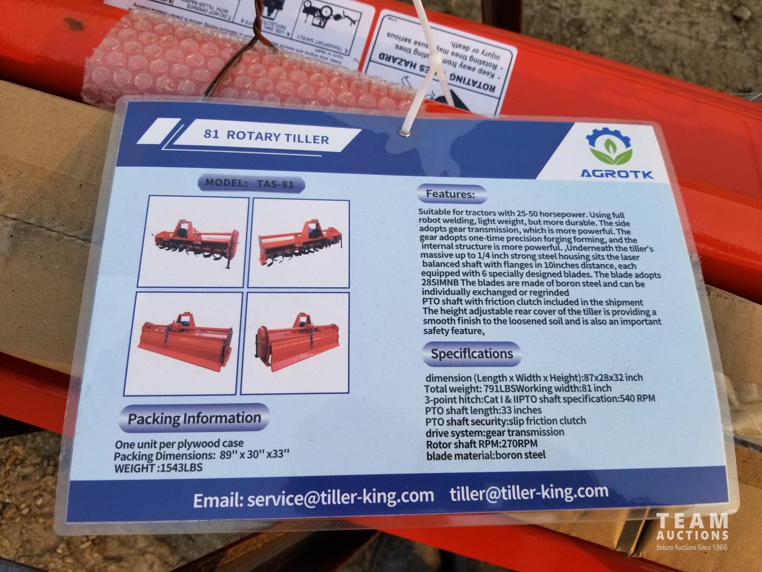258 2023 AGT Industrial TAS81 73 Inch 3 PT Hitch Rotary Tiller (Unused)