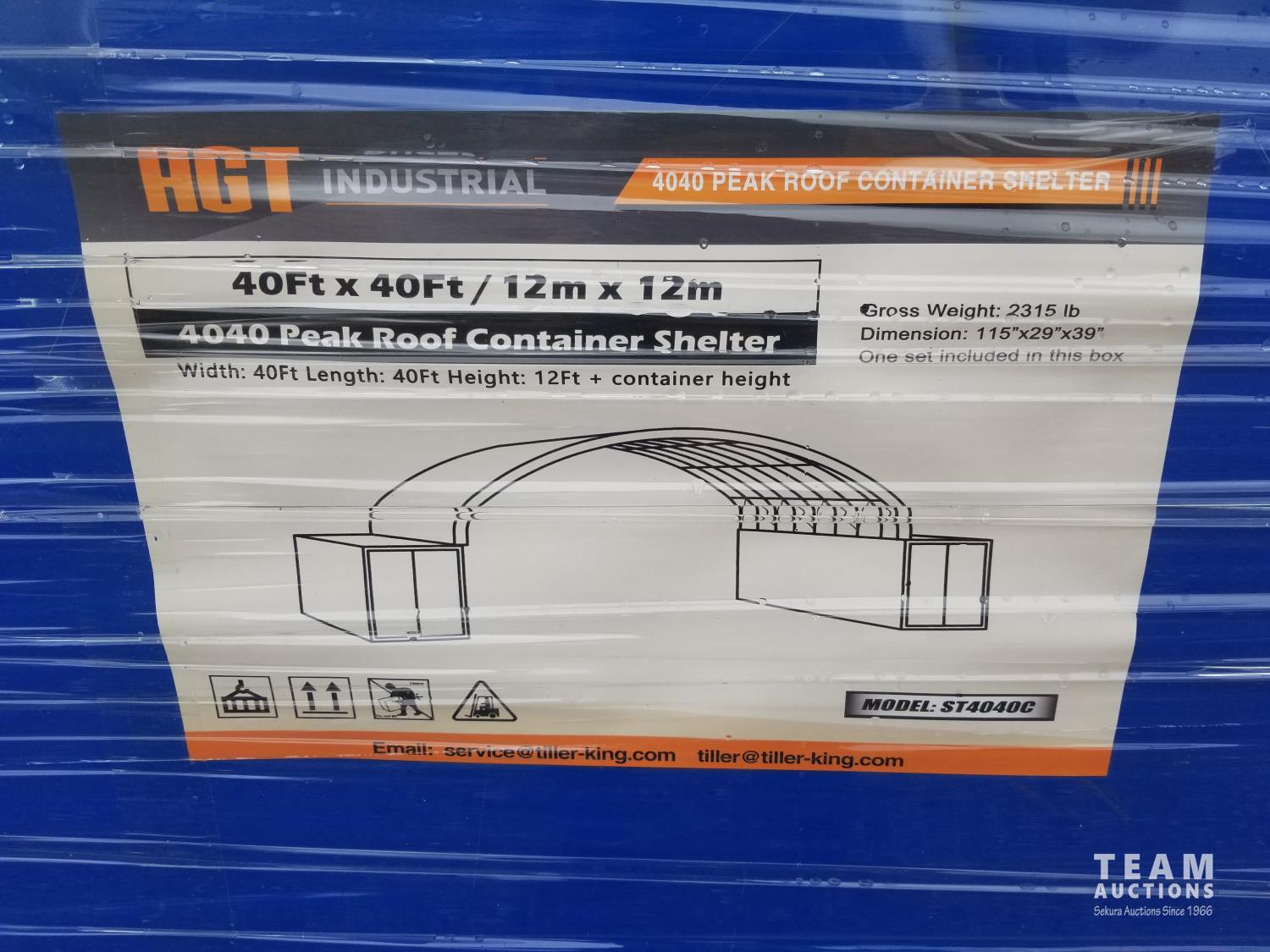 418 2023 AGT ST4040C 40 ft x 40 ft Peak Roof Container Shelter (Unused)