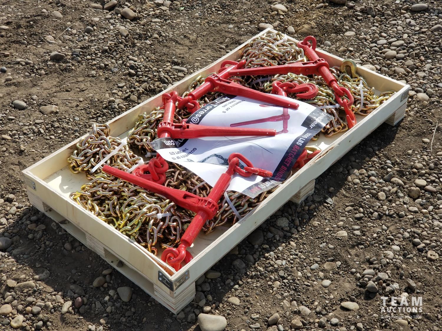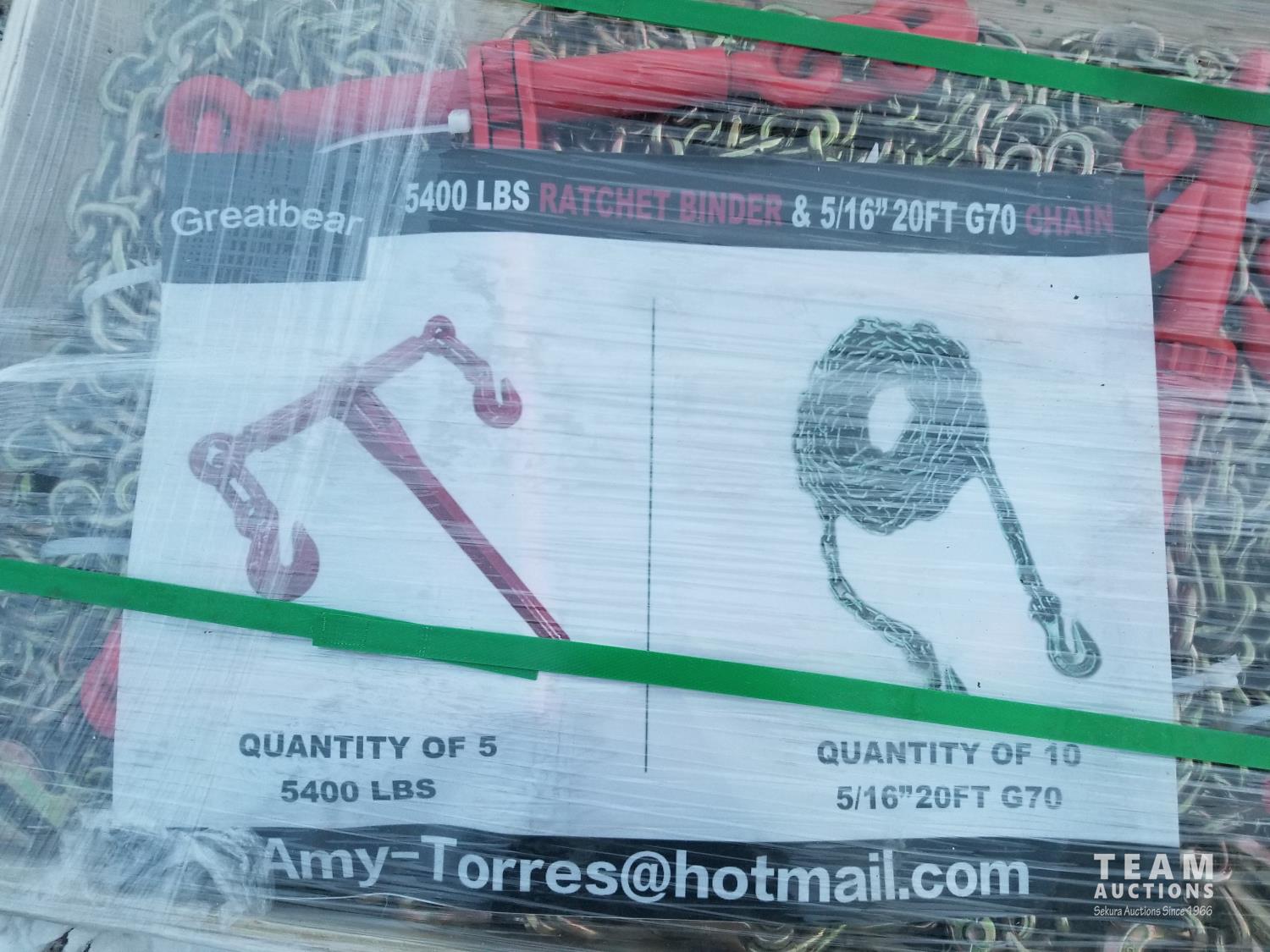 (5) 5400 lb ratchet binders, (10) 5/16 inch 20 ft G70 chain