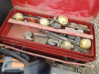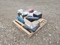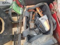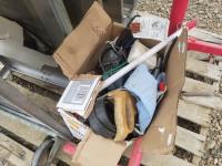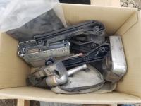 Ridgid hand tools, Arctic Cat drive belt, Coors light mini fridge, high power stereo power amplifier, empty Makita case