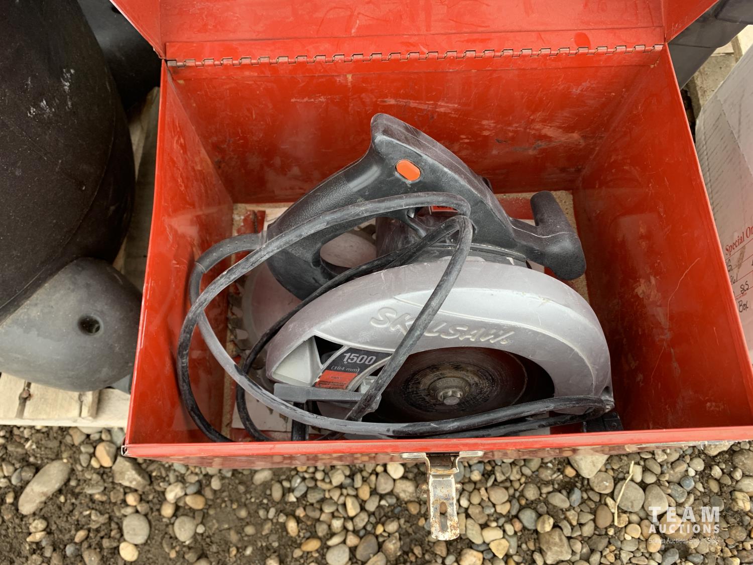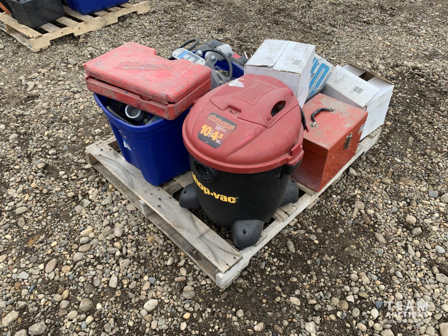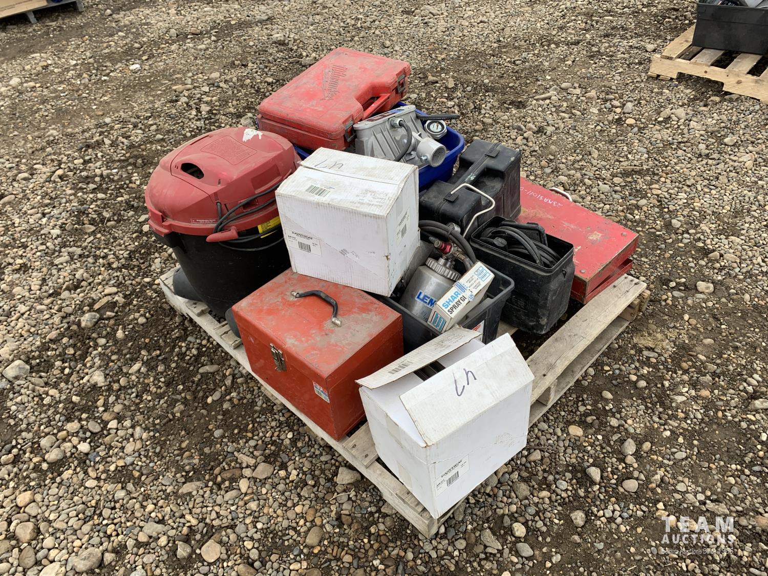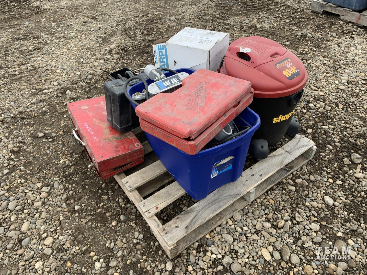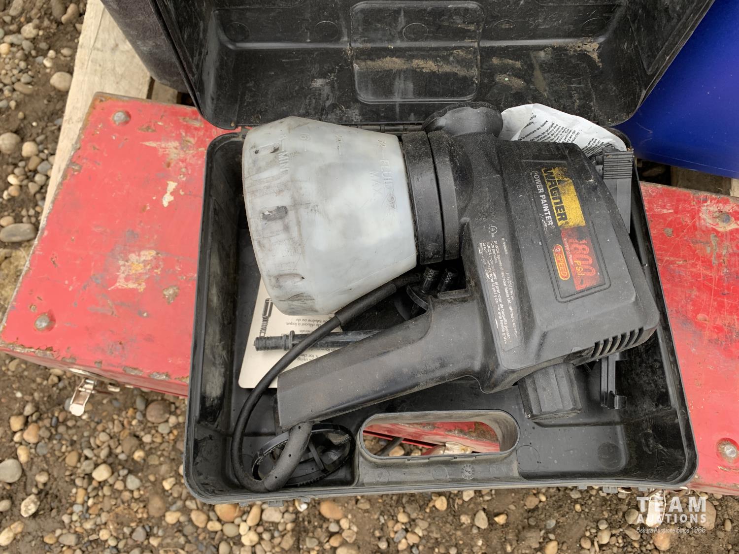 10 gallon shop vac, Porter Cable tiger saw, Wagner paint spray gun, Milwaukee jig saw, outdoor lights, Lenmer paint spray gun, Skil-Saw 7-1/4 inch circular saw