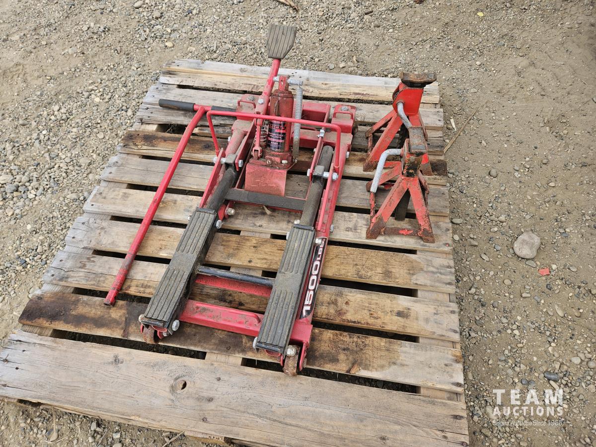 35 Powerbuilt 1500 lb Motorcycle/ATV Jack and (2) Jack Stands