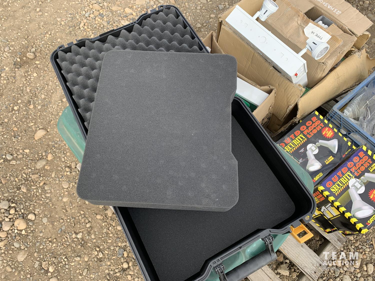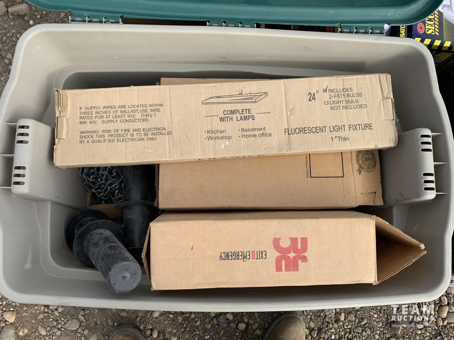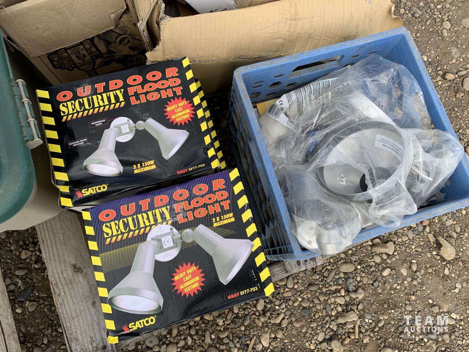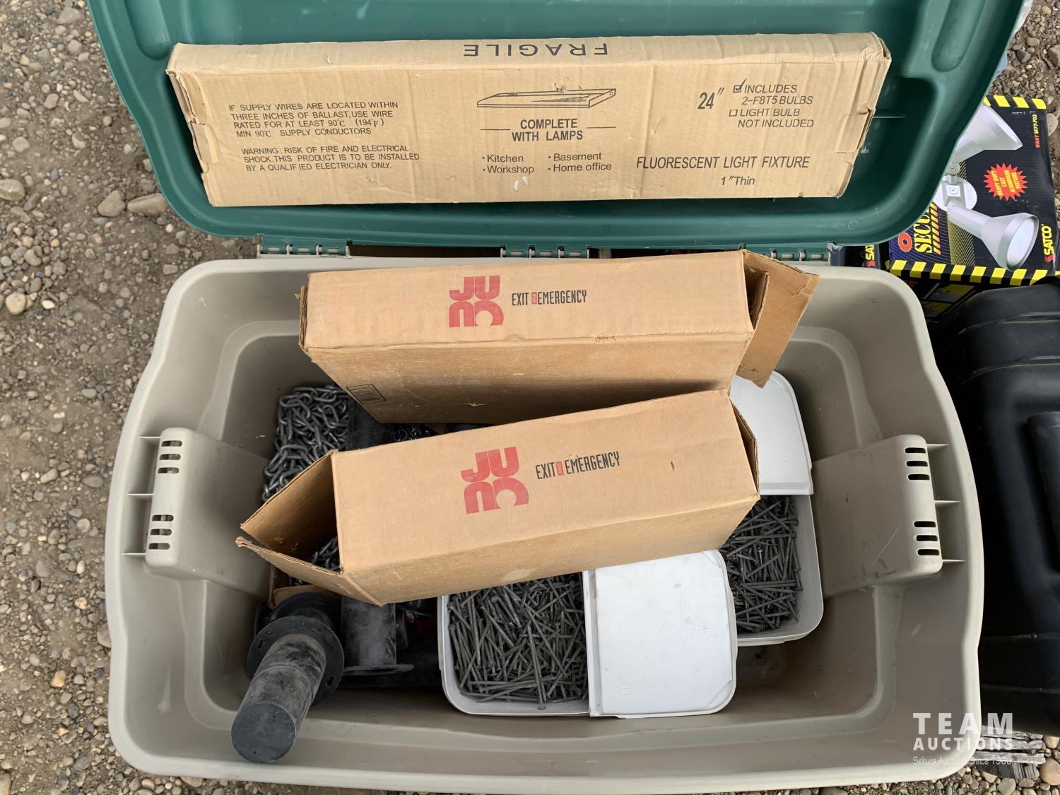 outdoor security flood lights, light fixture, 3-1/2 inch nails, emergency exit light, empty case