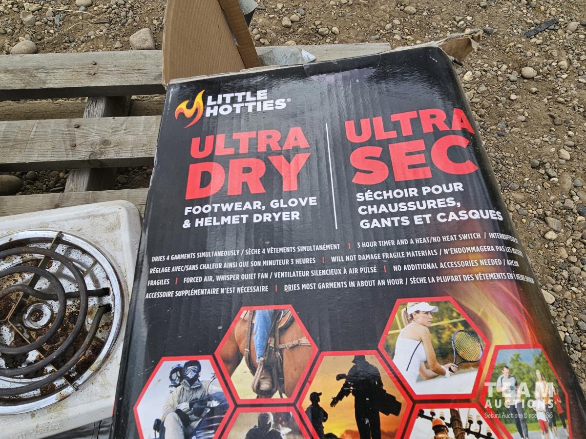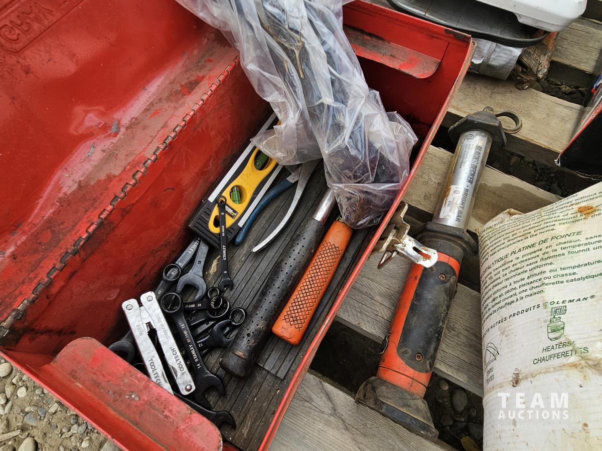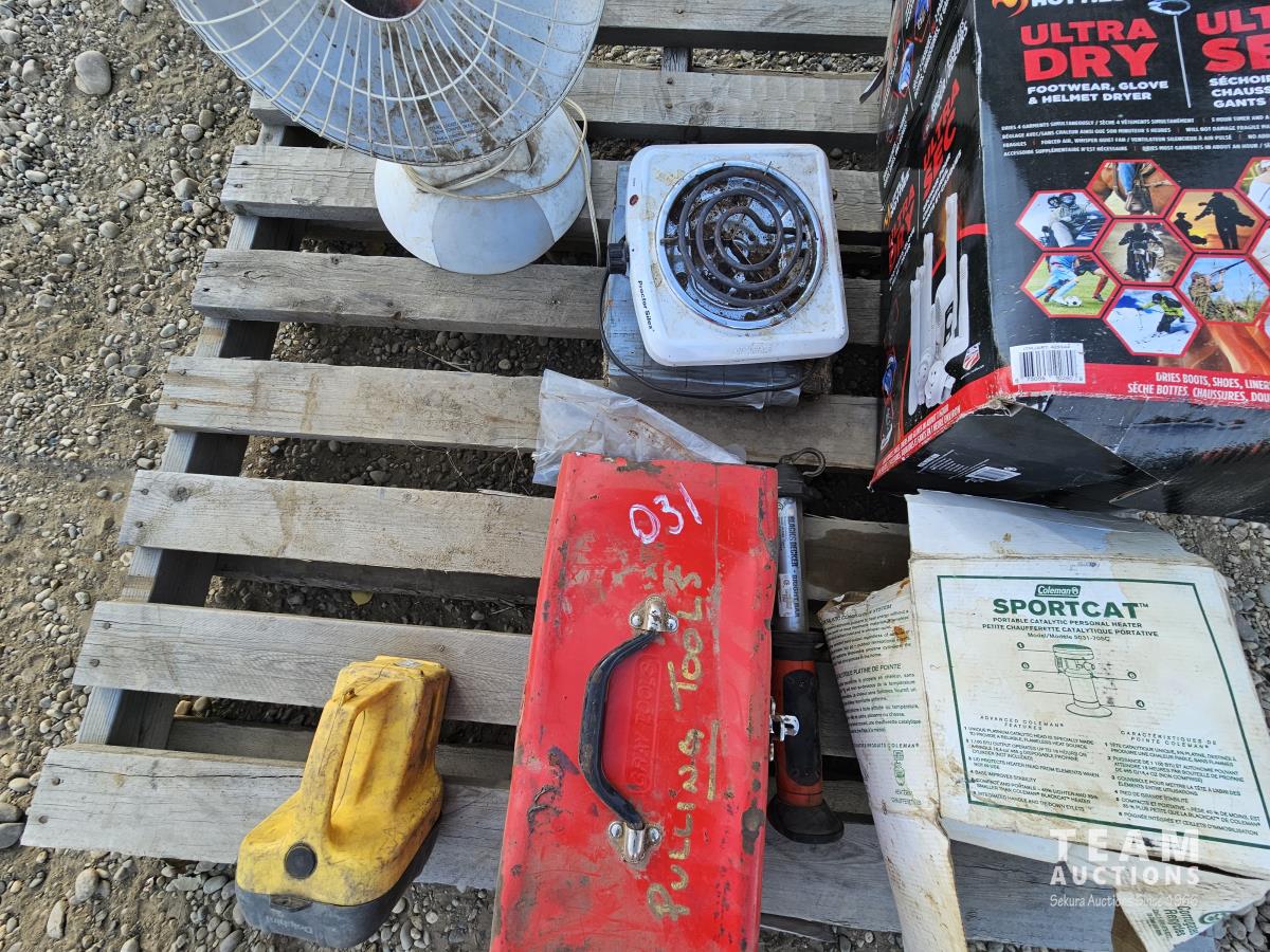 Heaters, red toolbox, ultra dry footwear glove and helmet dryer, Sportcat Propane outdoor mini heater, Flashlight