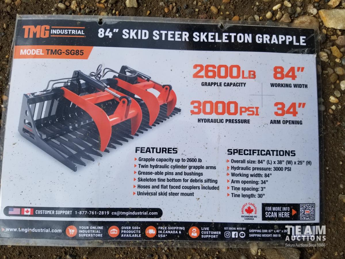 304 TMG Industrial SG85 84 Inch Skeleton Grapple-Skid Steer Attachment (Unused)