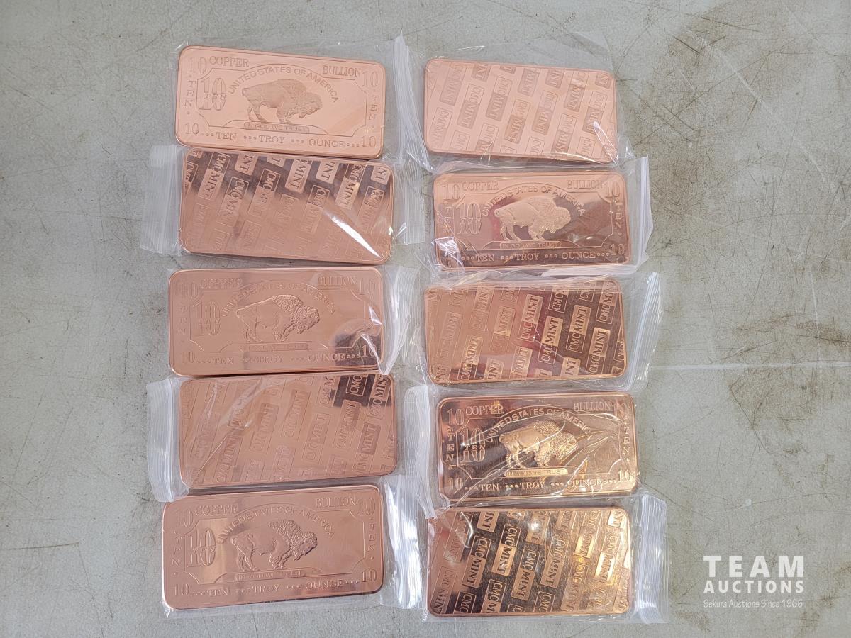 1703 (10) 10 Ounce Copper Bars