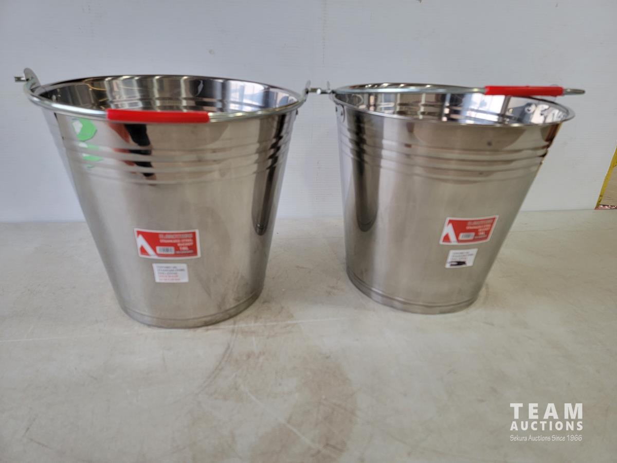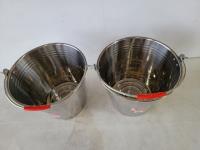 1444 (2) H. Brothers 16L Stainless Steel Buckets (Unused)