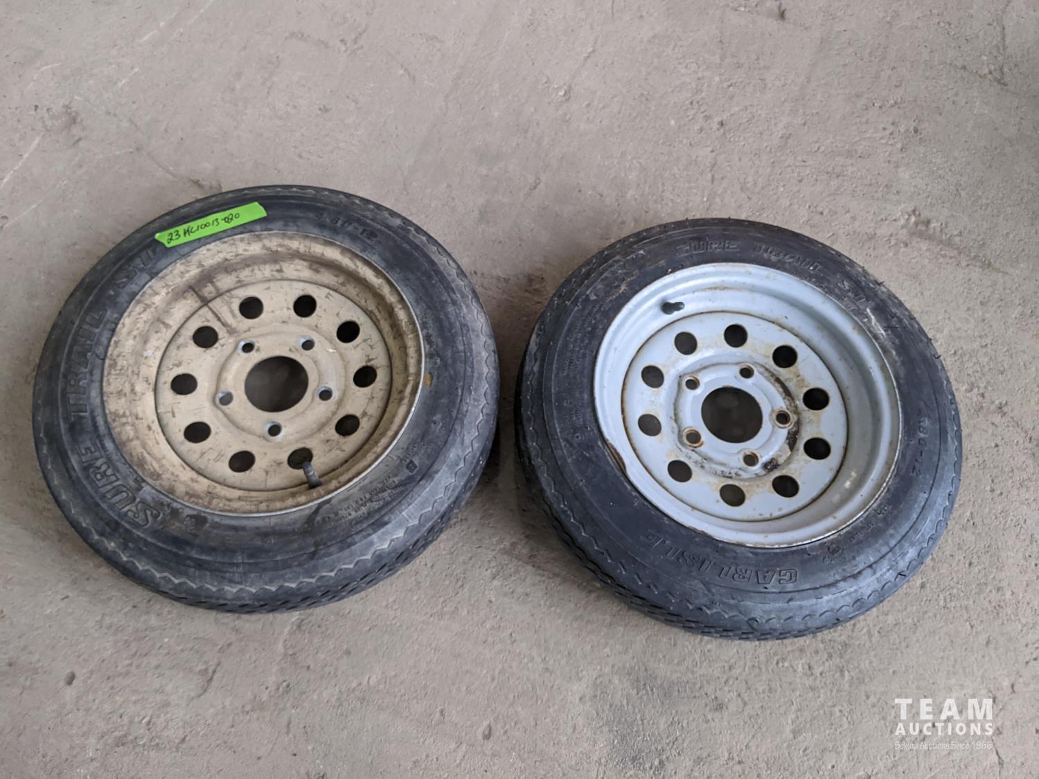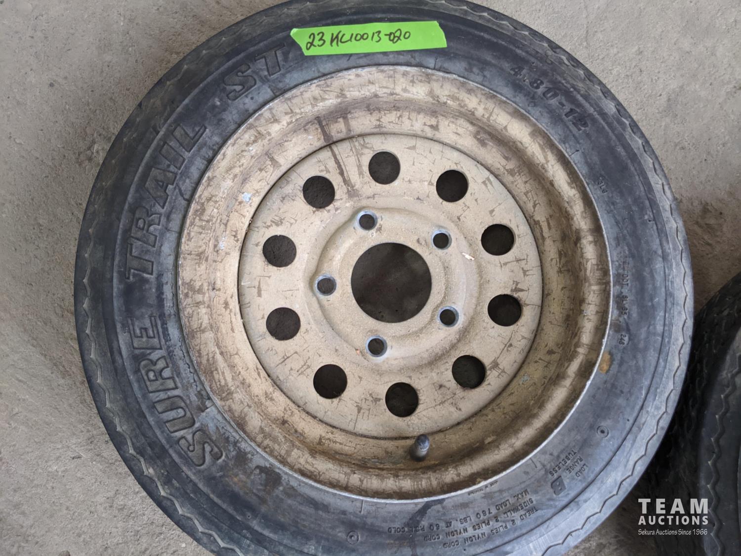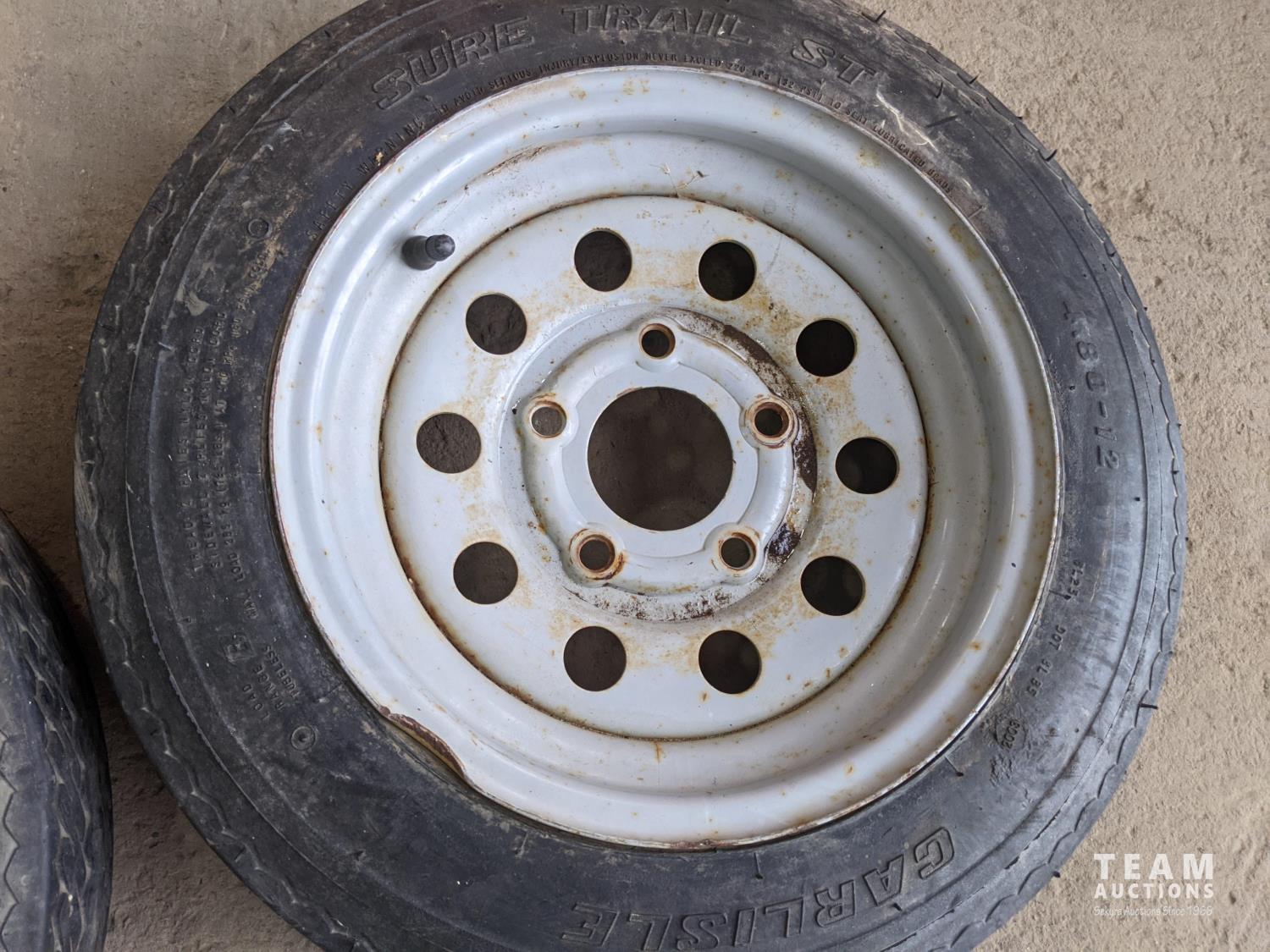 1129 (2) Sure Trail St 4.80-12 Tires with 5 Bolt Rims