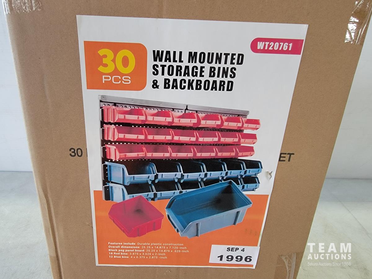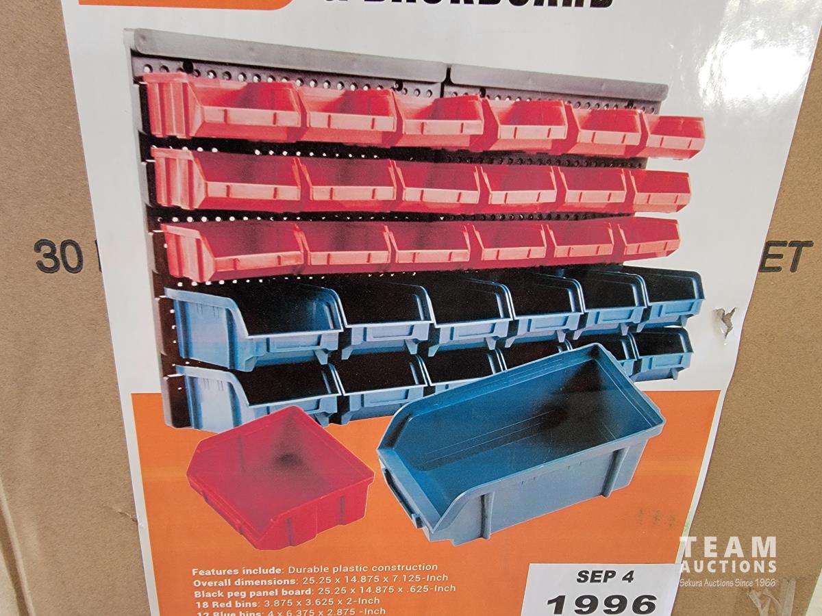 1615 30 Piece Wall Mounted Storage Bins and Backboard (Unused)