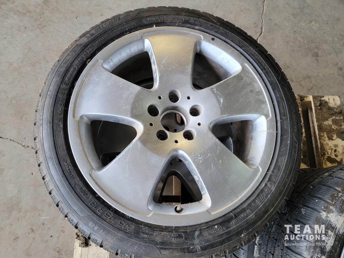 1117 (4) Michelin Pilot Alpine 245/45R18 Tires on 5 Bolt Rims