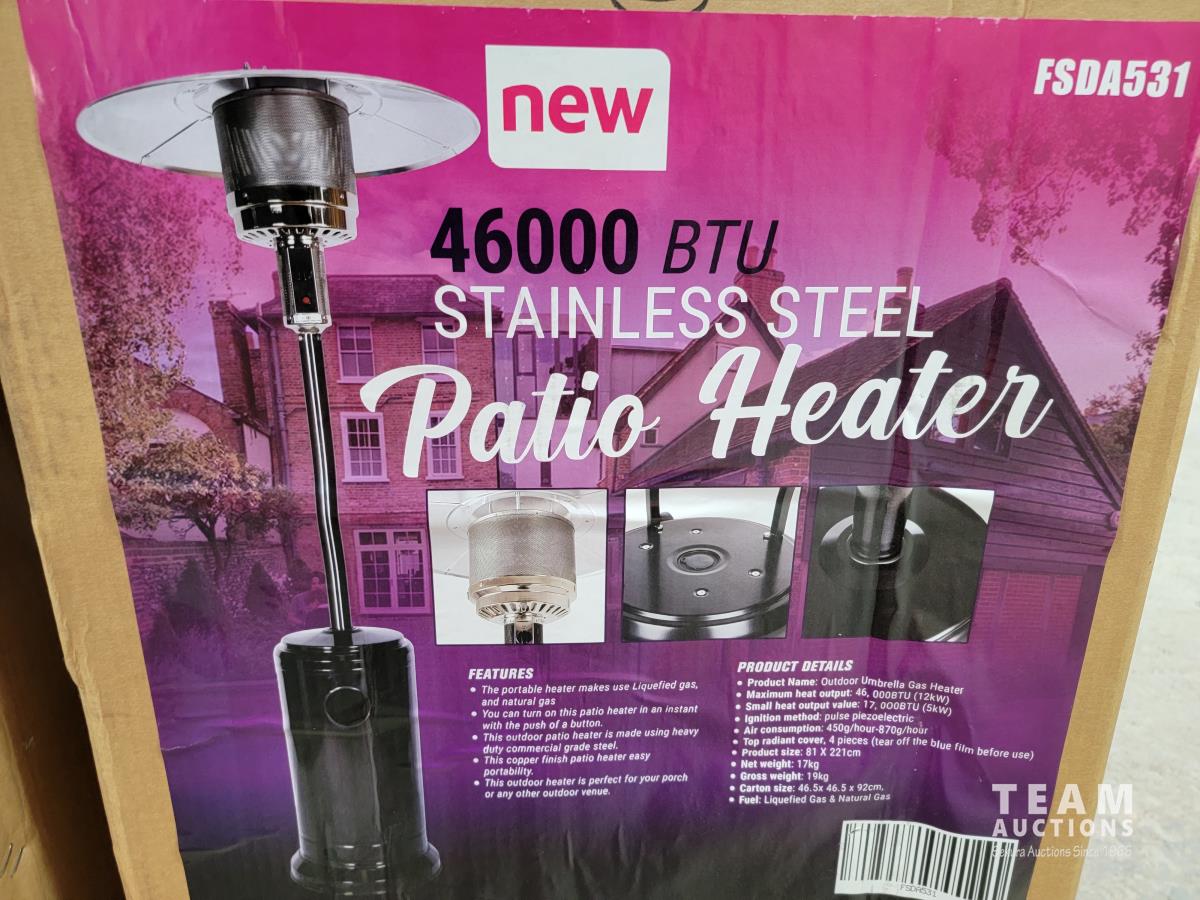 1503 46,000 BTU Stainless Steel Gas Patio Heater (Unused)