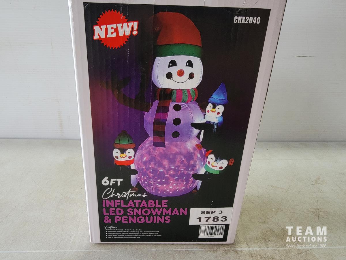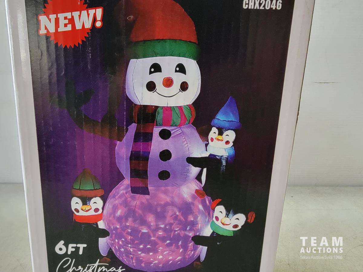 1641 Christmas 6 Ft Snowman and Penguins Inflatable (Unused)