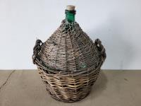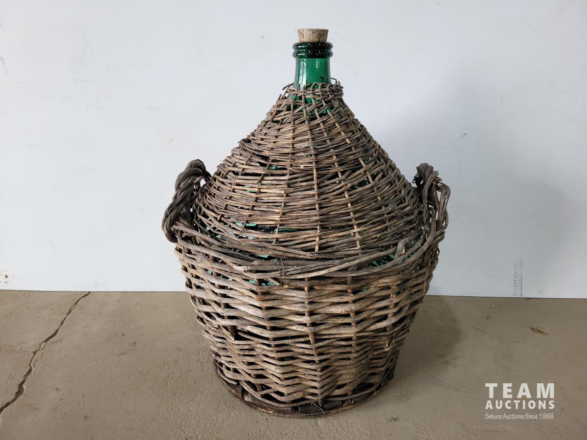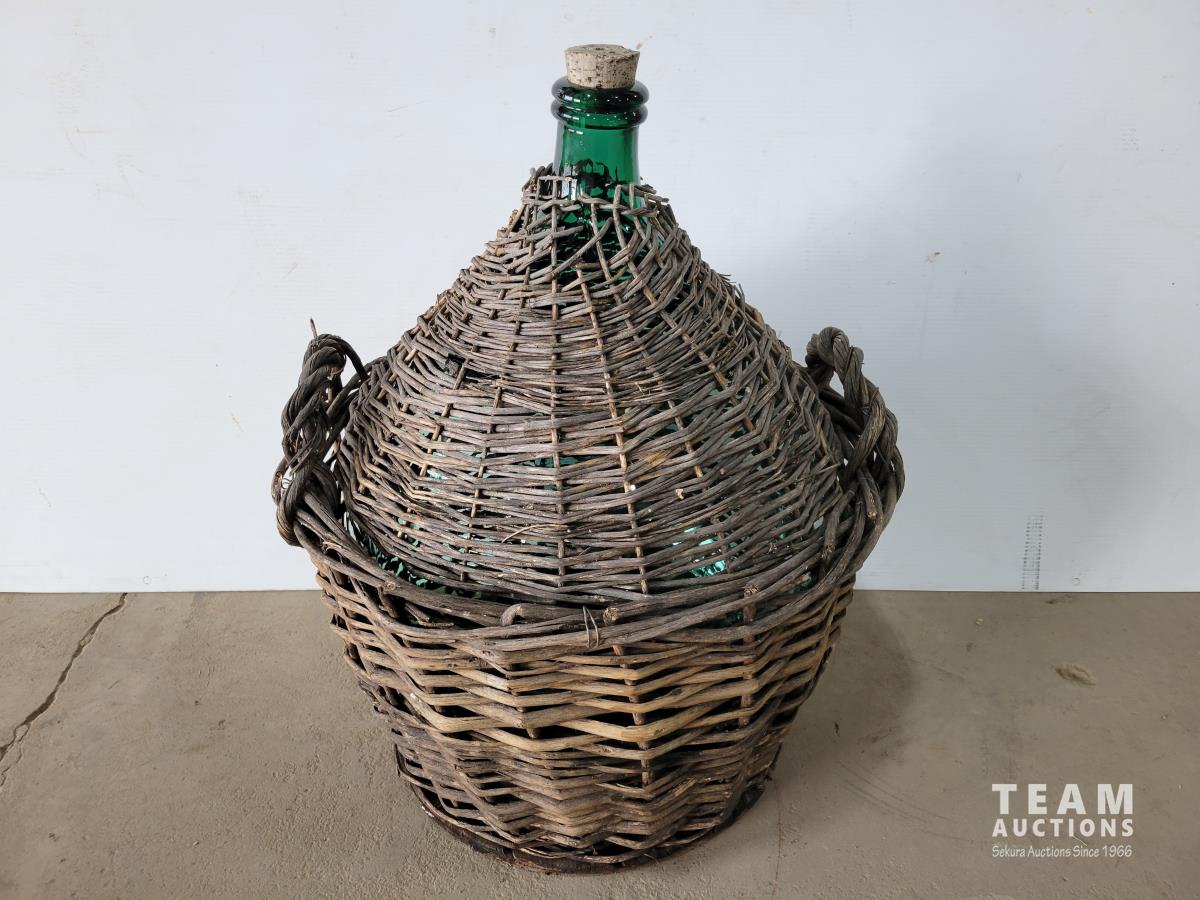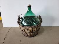 1307 Green Glass Amphora in Woven Basket