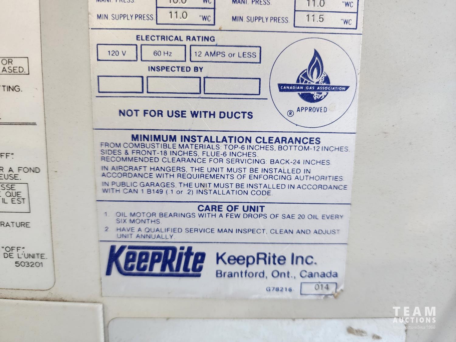 1379 KeepRite Propane Overhead Heater