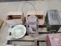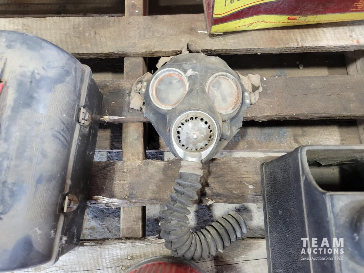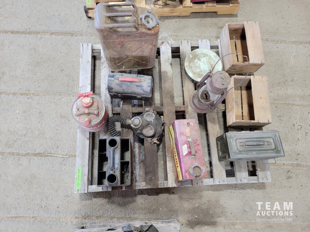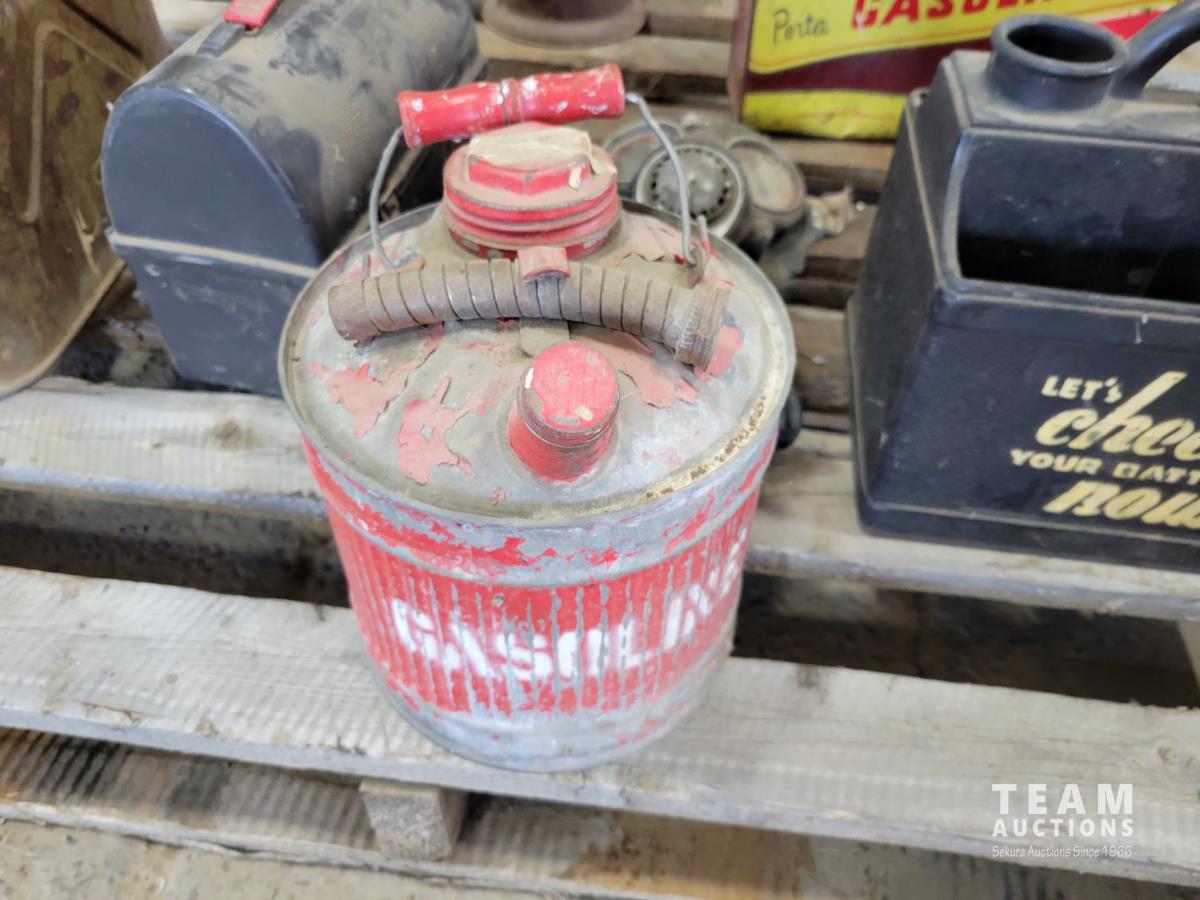 Gas cans, gas mask, lunch box, battery tender, lantern