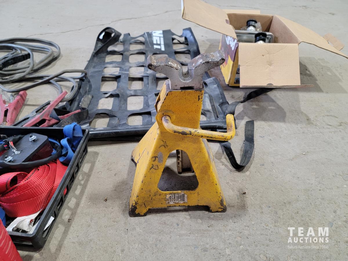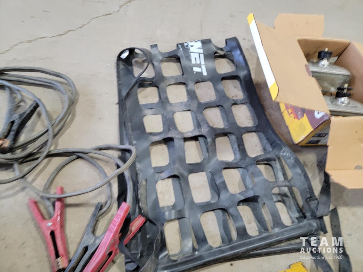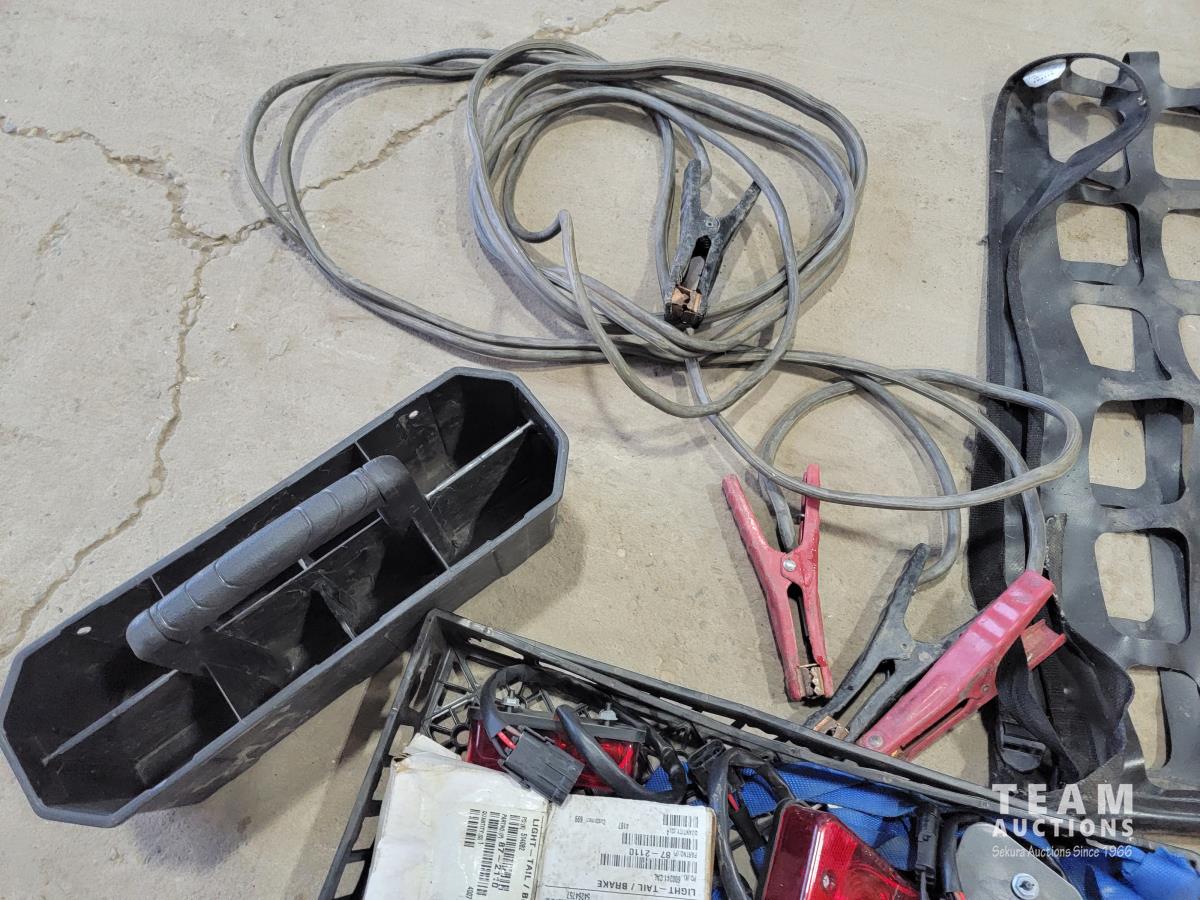 Booster cables, block heater timers, trailer brake lights, jack stand, cargo net and hitch