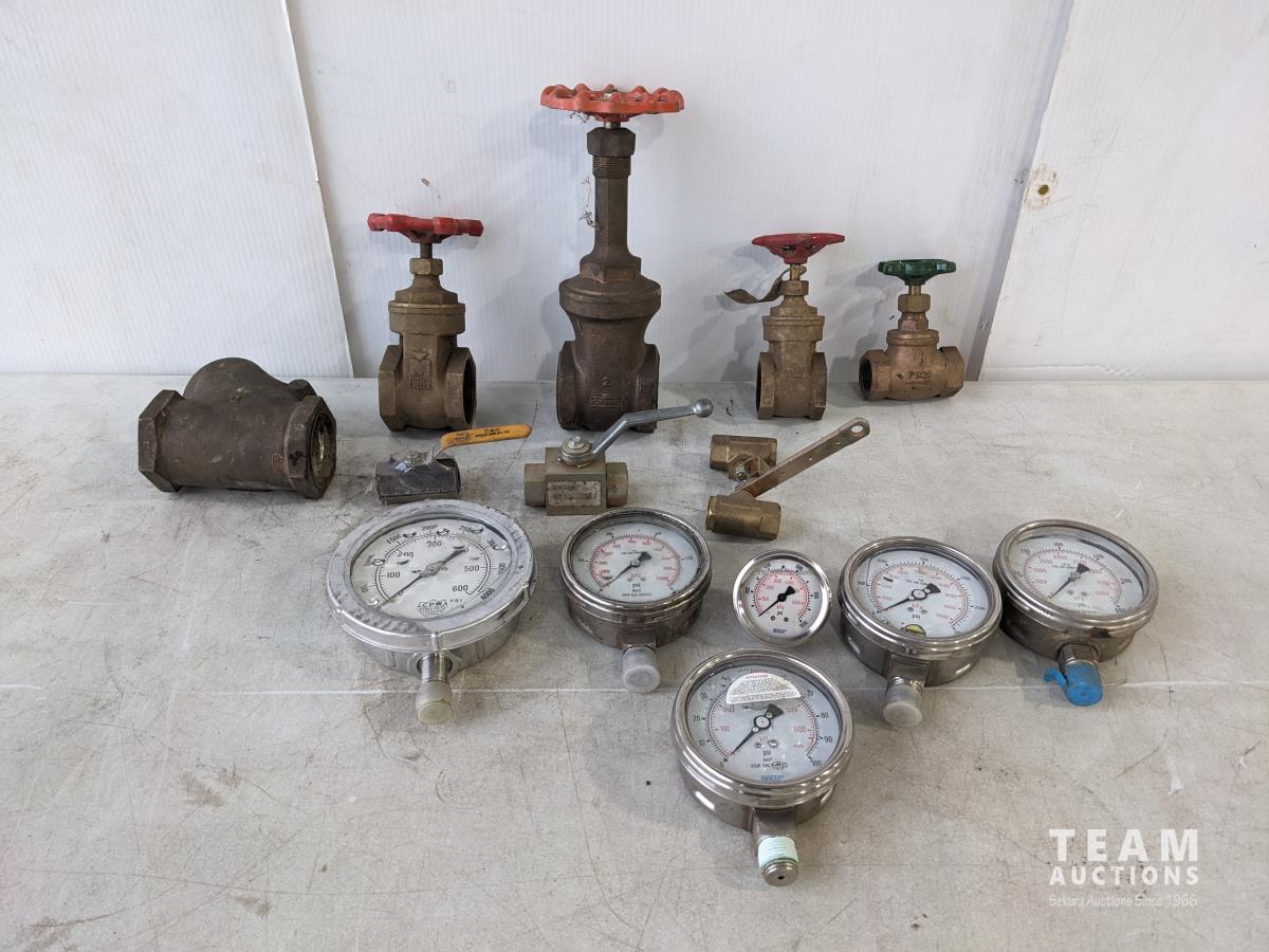 1064 Qty of Brass Gate Valves and Pressure Gauges