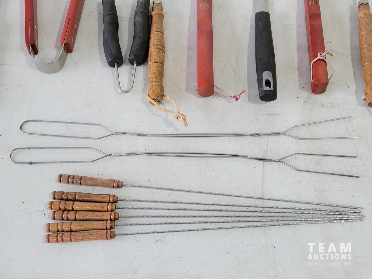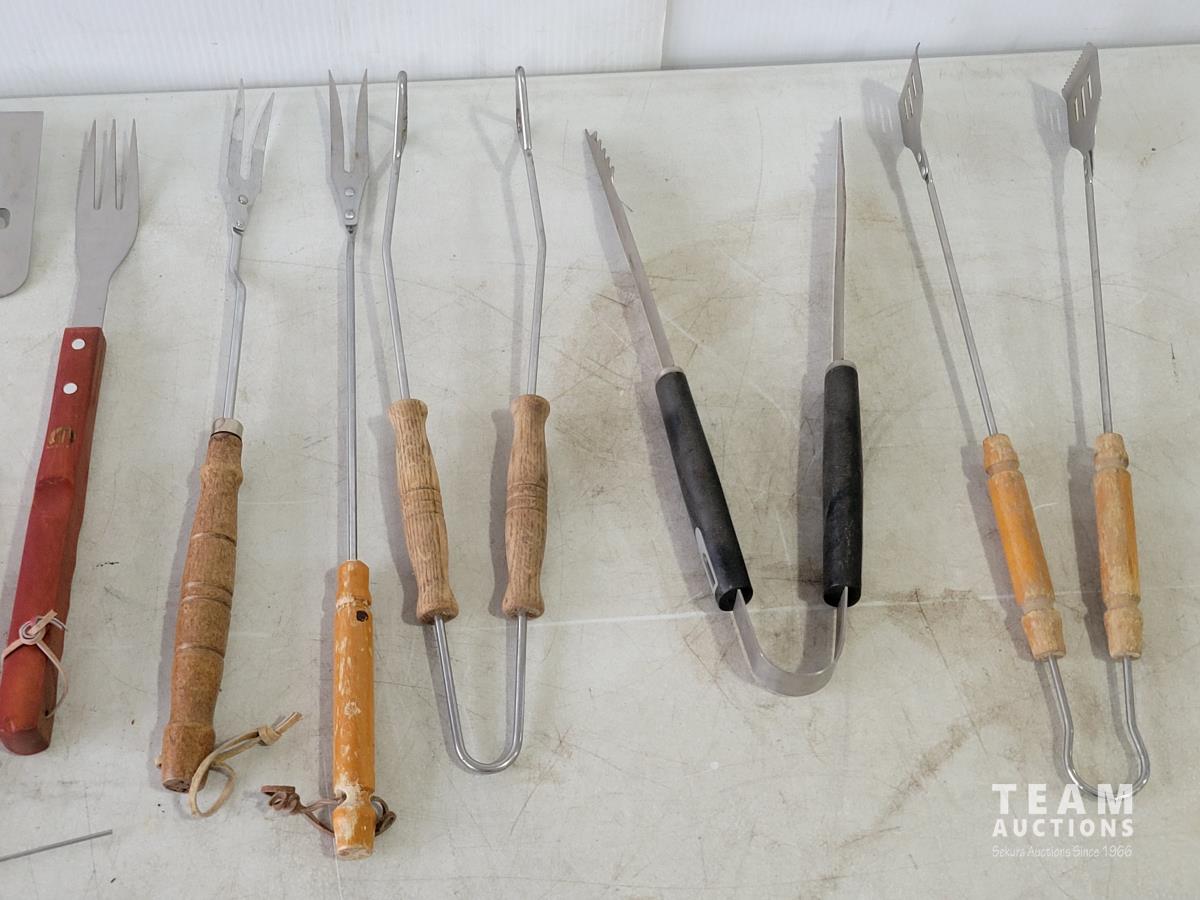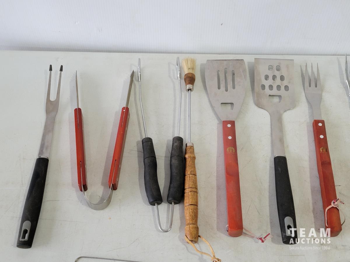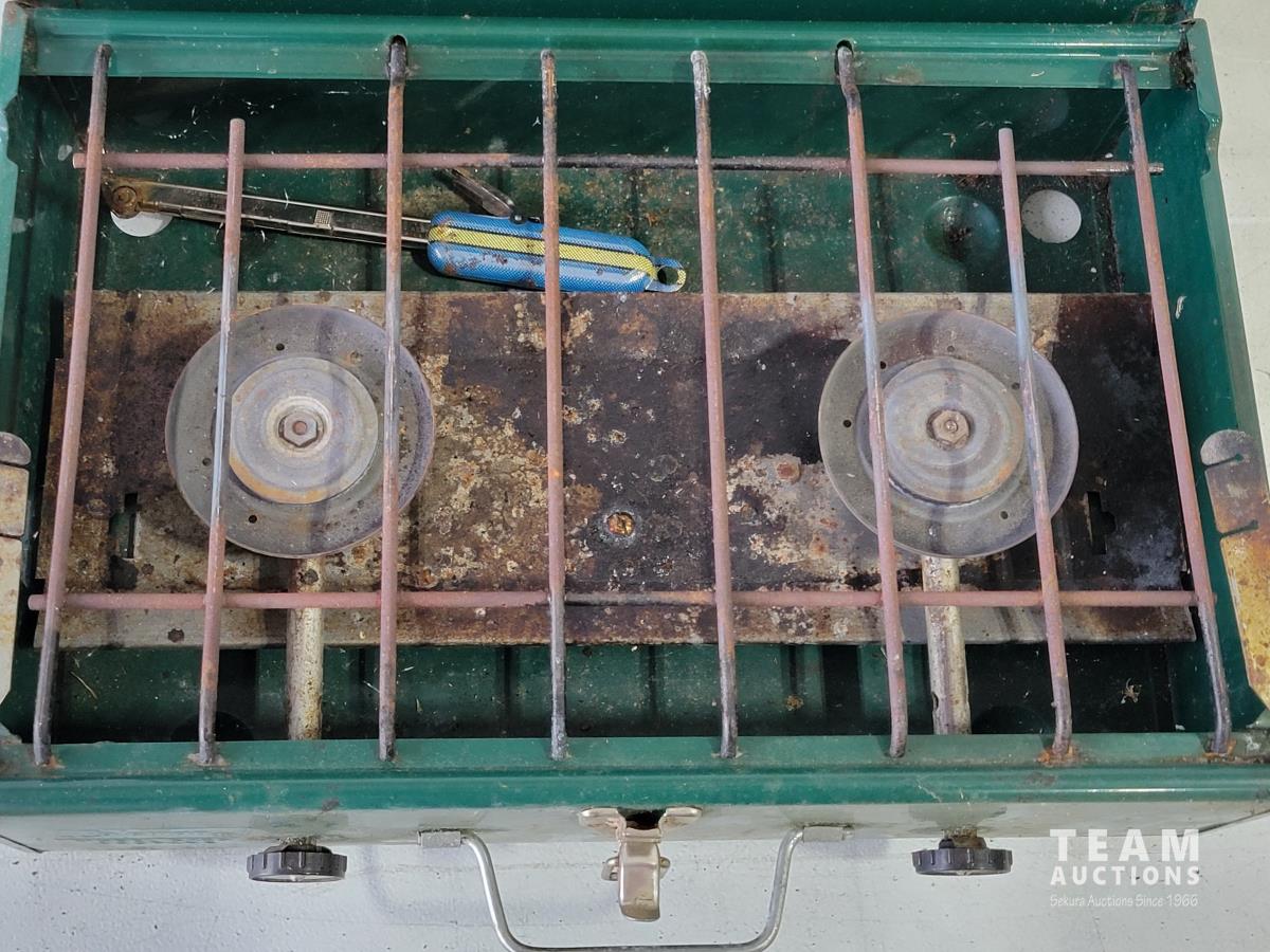 Igloo cooler, propane tree, Coleman camp stove, portable gourmet stove, propane lantern, propane heater, qty of BBQ tools, clothes pins