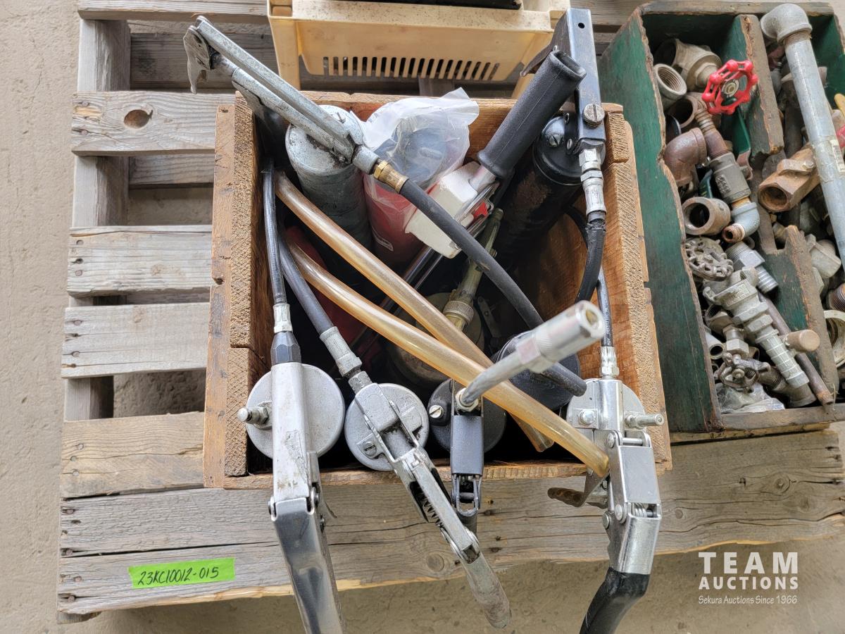 1170 Qty of Grease Guns, Nuts & Bolts, Saw Blades, Fuel Nozzles and Qty of Valves and Fittings