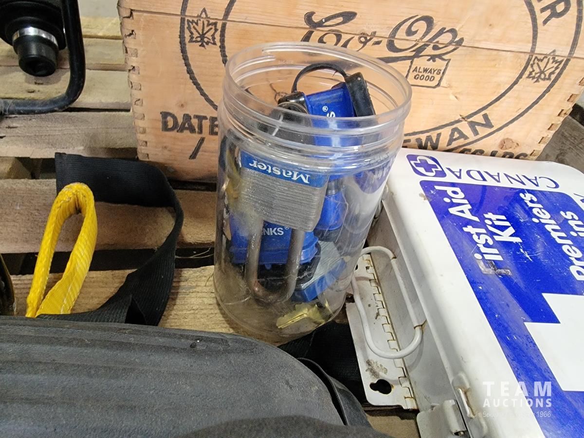 Propane heater, air bags, knee pads, regulators and qty of locks