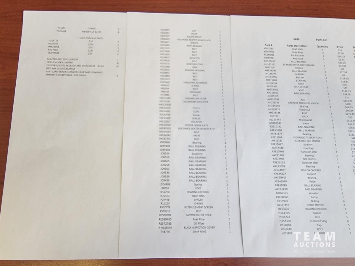 1881 Qty of O-Rings, Chain Parts, Bearings For John Deere 680 Combine